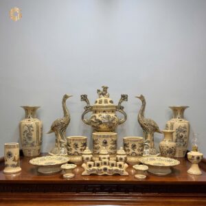 - Men rạn màu ngà xám và có các vết rạn xung quanh. Thông thường loại men này được sử dụng cho những sản phẩm như đài thờ, ấm trà, cặp nghê…