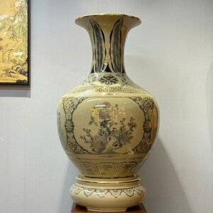 Bình Phú Quý Gốm Chu Đậu H85 hoạ tiết tứ cảnh ý nghĩa vẽ vàng 24k PQTC08