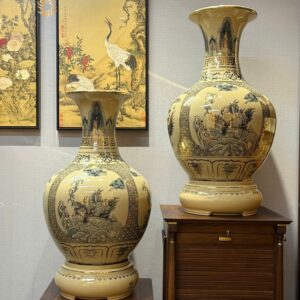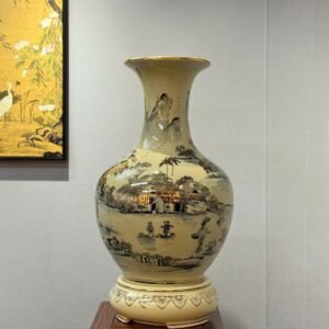 Bình Phú Quý Gốm Chu Đậu H50 Tứ Cảnh Sơn Thuỷ Vẽ Vàng 24K PQSTH50VK