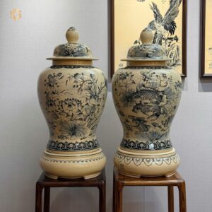 Cặp Thống Gốm Chu Đậu Tứ Cảnh Sơn Thuỷ F60 X H56 Men Gốm Truyền Thống