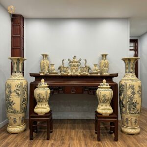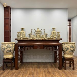 Bộ đồ thờ Gốm Chu Đậu men gốm truyền thống ban dài : 81cm – 88 cm