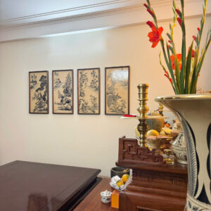Tranh Gốm Chu Đậu Hoạ Tứ Cảnh Sơn Thuỷ Vẽ Vàng 24K 43cm x 81cm.