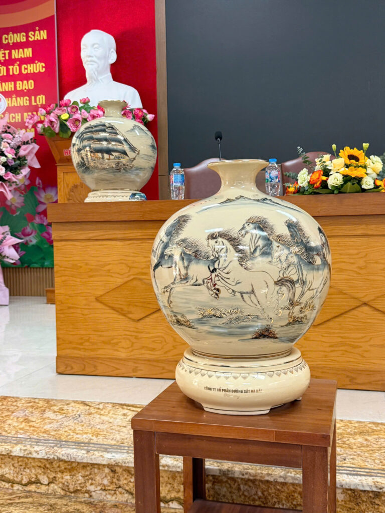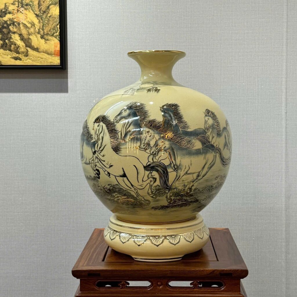 Review Bình Hút Lộc Gốm Chu Đậu H45 Hoạ Tiết Mã Đáo Thành Công Vẽ Vàng 24K HLMD06