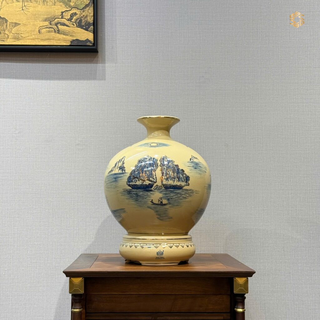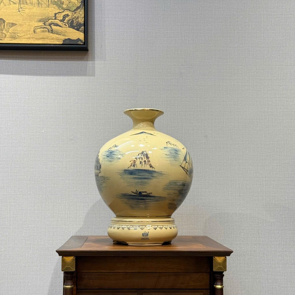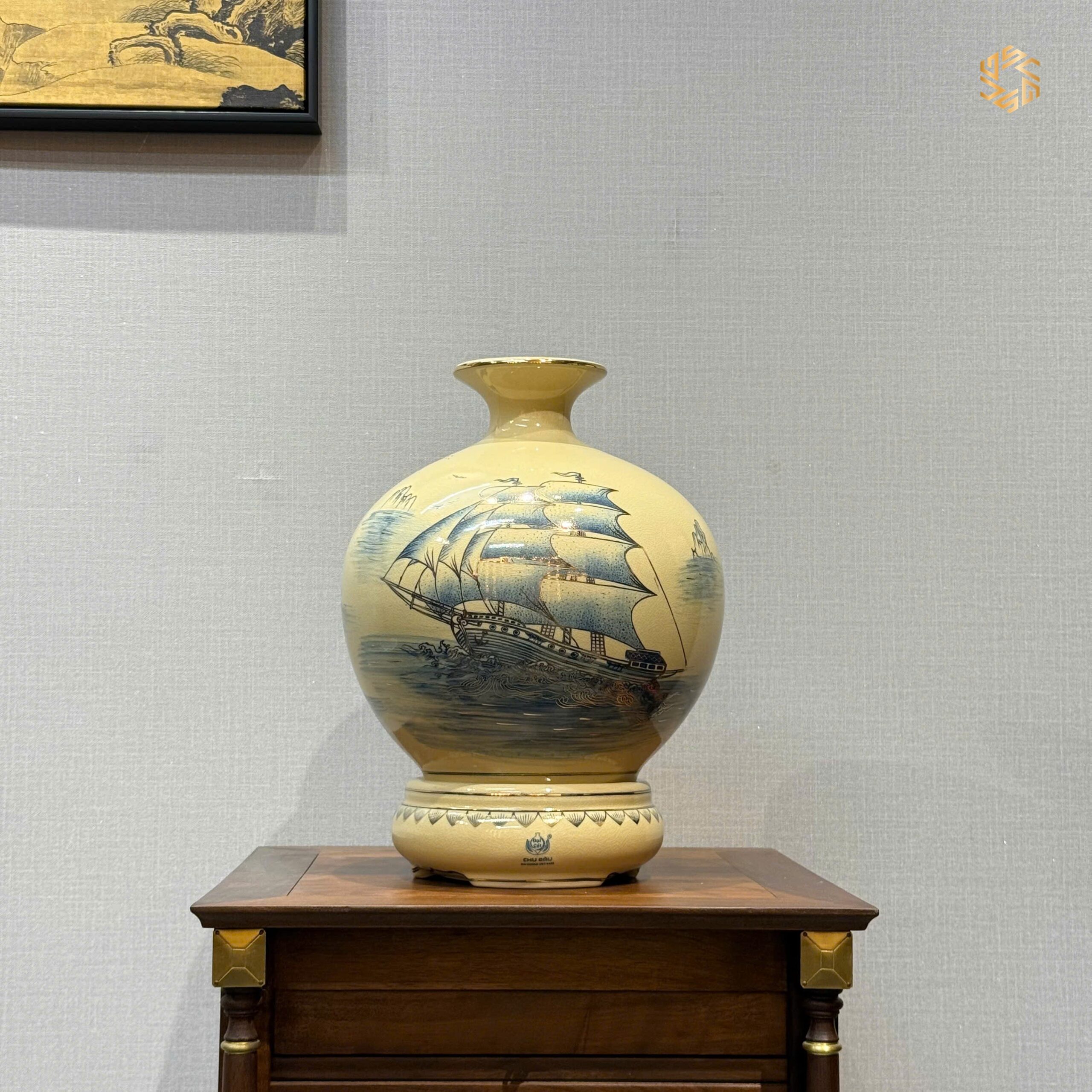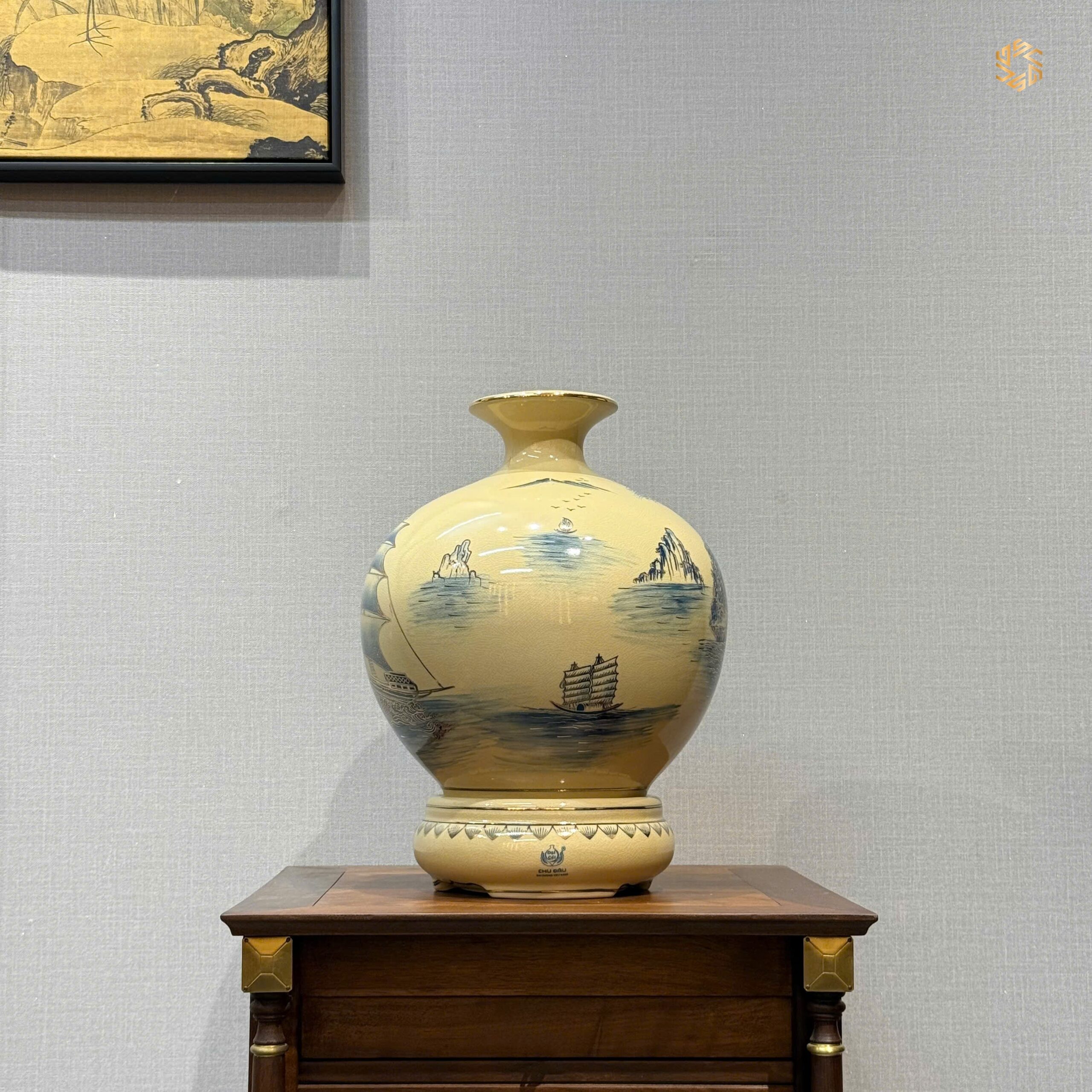 - Bình Hút Lộc Gốm Chu Đậu hoạ tiết thuận buồm xuôi gió 24K từ làng nghề truyền thống Chu Đậu nổi tiếng của Việt Nam, là món quà tặng vô cùng ý nghĩa phù hợp trong nhiều trường hợp cụ thể như: Biếu Tặng Sếp – Lãnh Đạo, Tân Gia, Tặng Doanh Nghiệp, Hội Nghị.