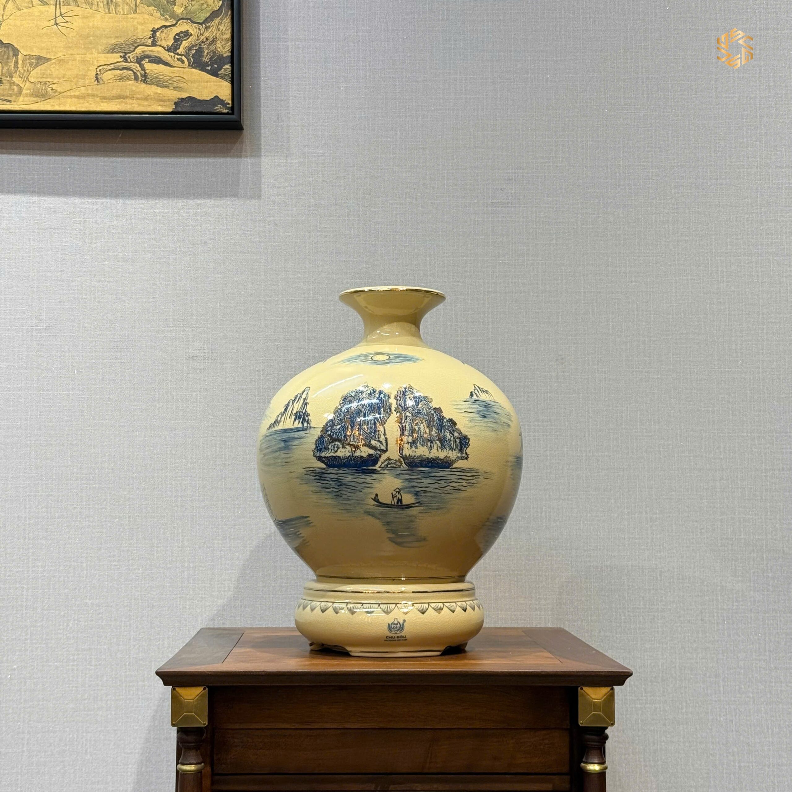 - Chất liệu: Gốm vẽ vàng 24K, Men Cổ Lam.