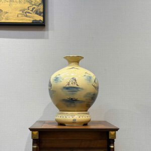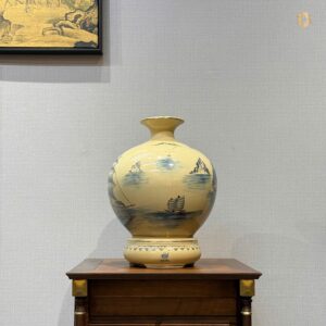 Bình Hút Lộc Gốm Chu Đậu Men Cổ Lam H30 Hoạ Tiết Thuận Buồm Xuôi Gió Vẽ vàng HLTBCL03