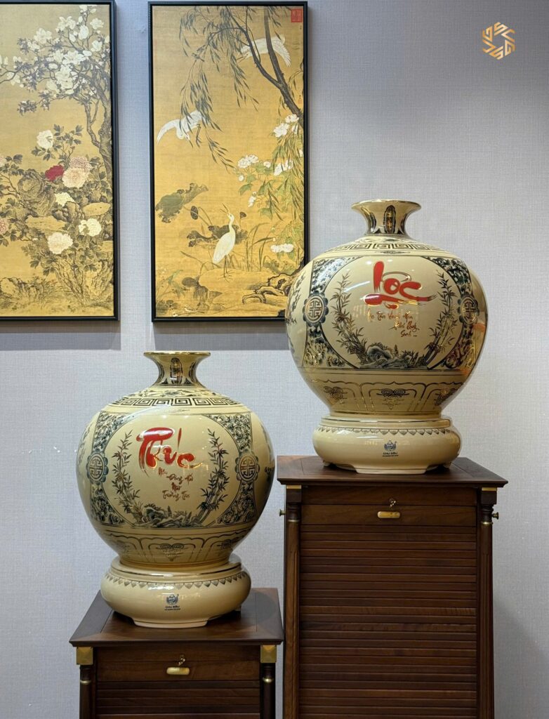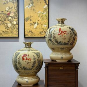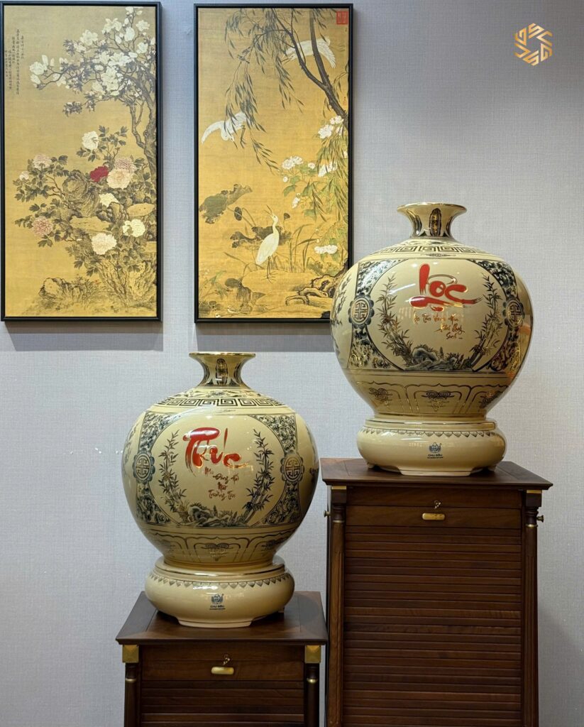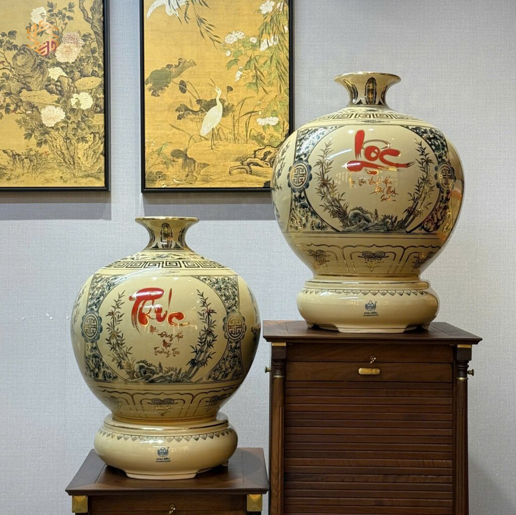 - Cặp Bình Hút Lộc Gốm Chu Đậu hoạ tiết CHỮ PHÚC – CHỮ LỘC Vẽ Vàng 24K từ làng nghề truyền thống Chu Đậu nổi tiếng của Việt Nam, là món quà tặng vô cùng ý nghĩa phù hợp trong nhiều trường hợp cụ thể như: Biếu Tặng Sếp – Lãnh Đạo, Tân Gia, Tặng Doanh Nghiệp, Hội Nghị……