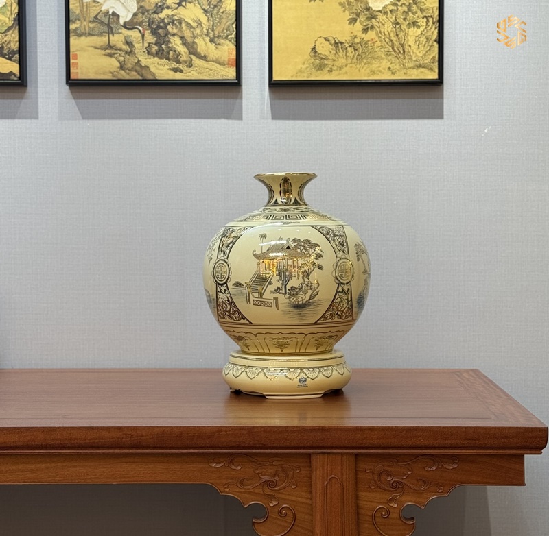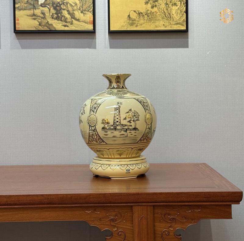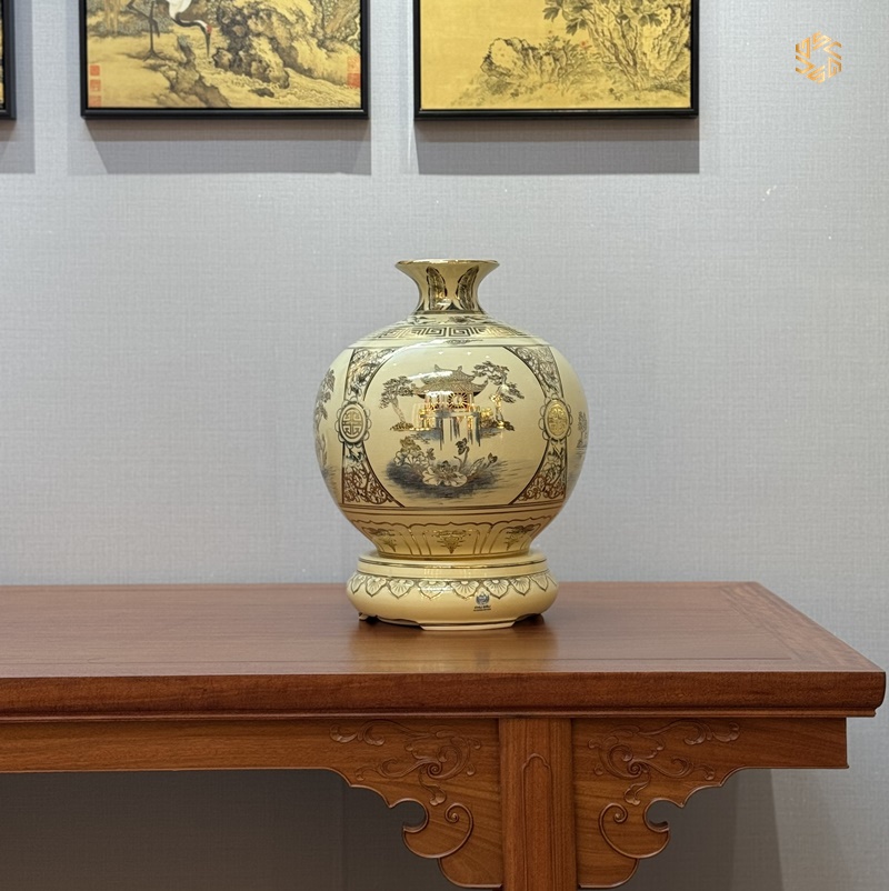 • Chất liệu: Gốm vẽ vàng 24K.