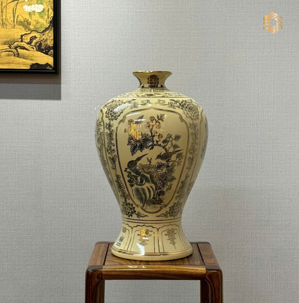 - Mai bình tích lộc hoạ tiết TỨ CẢNH ý nghĩa Vẽ Vàng 24K từ làng nghề truyền thống Gốm Chu Đậu nổi tiếng của Việt Nam, là món quà tặng vô cùng ý nghĩa phù hợp trong nhiều trường hợp cụ thể như: Biếu Tặng Sếp,Lãnh Đạo, Tân Gia, Tặng Doanh Nghiệp, Hội Nghị…..