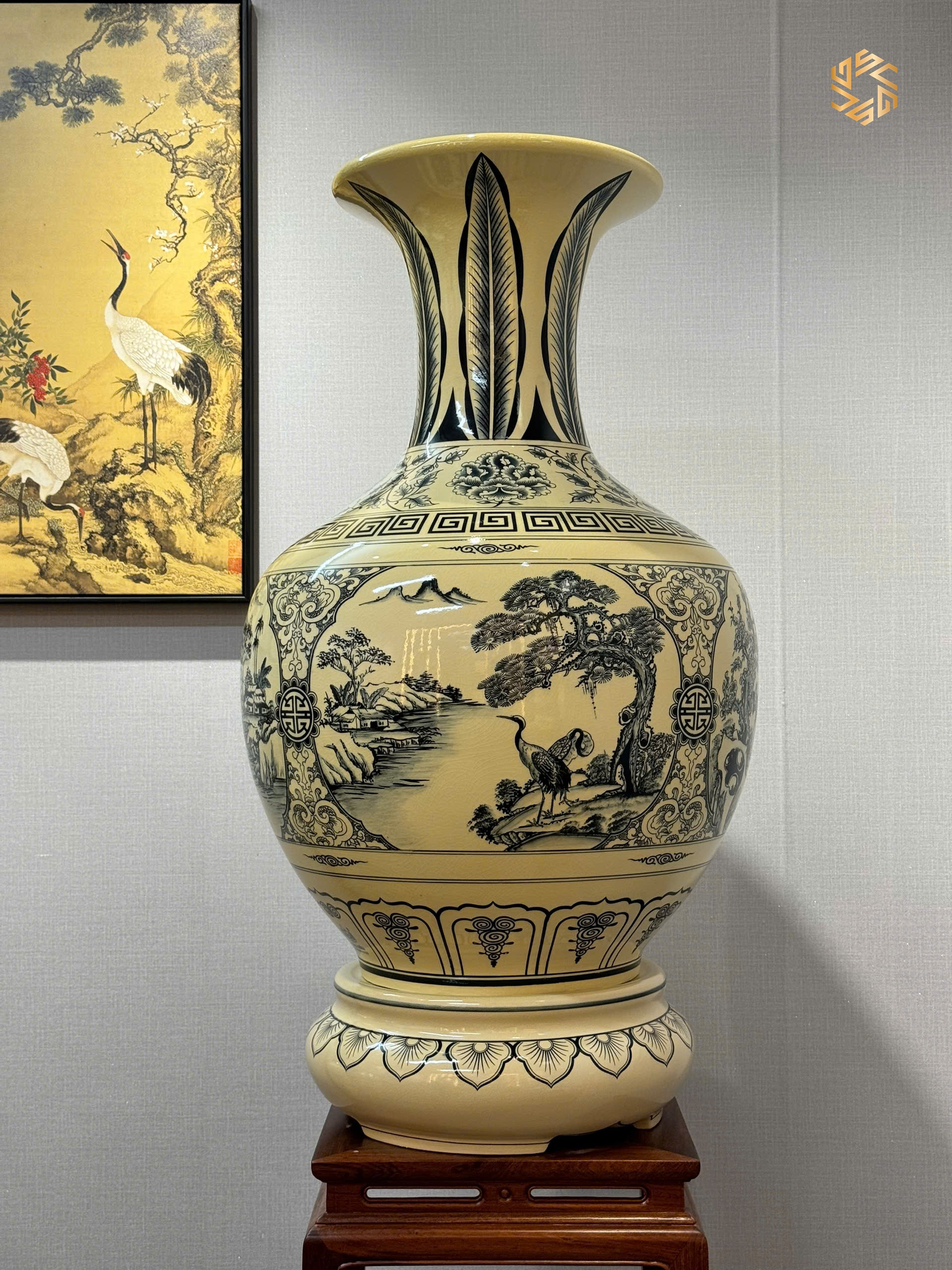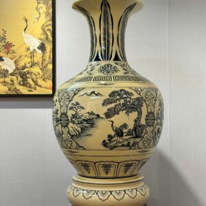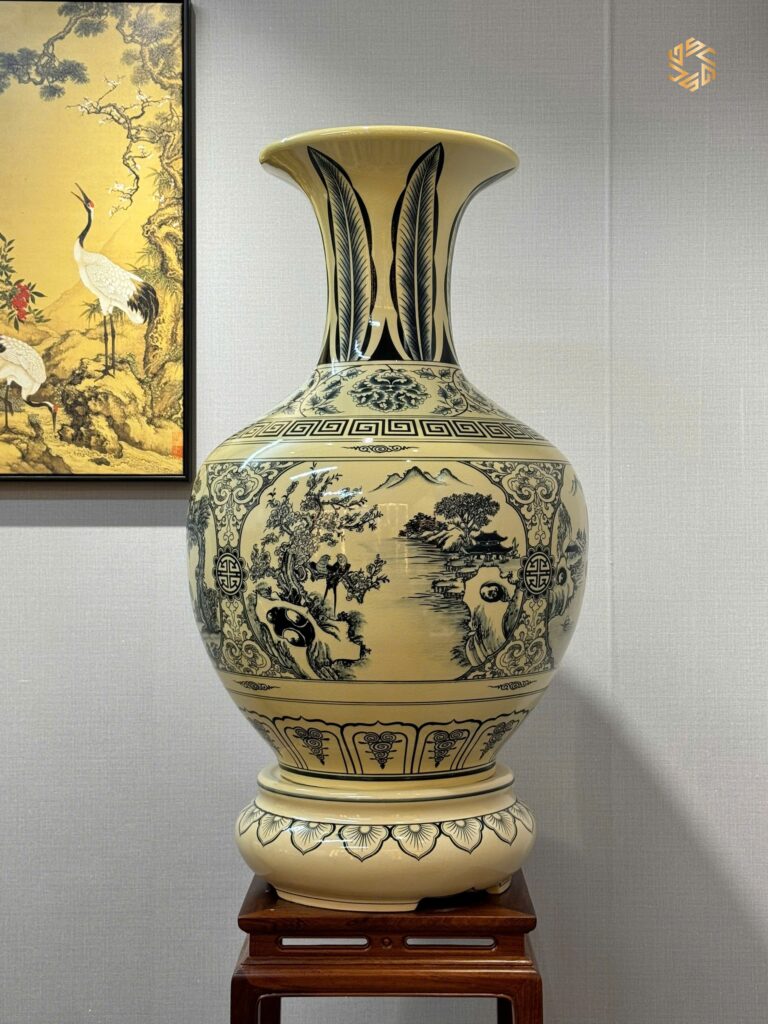 Bình Phú Quý Gốm Chu Đậu H85 Hoạ Tiết Tứ Cảnh Bốn Mùa Men Gốm Truyền Thống