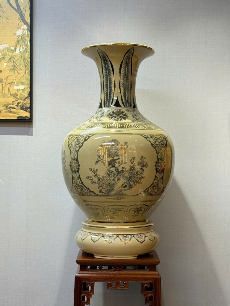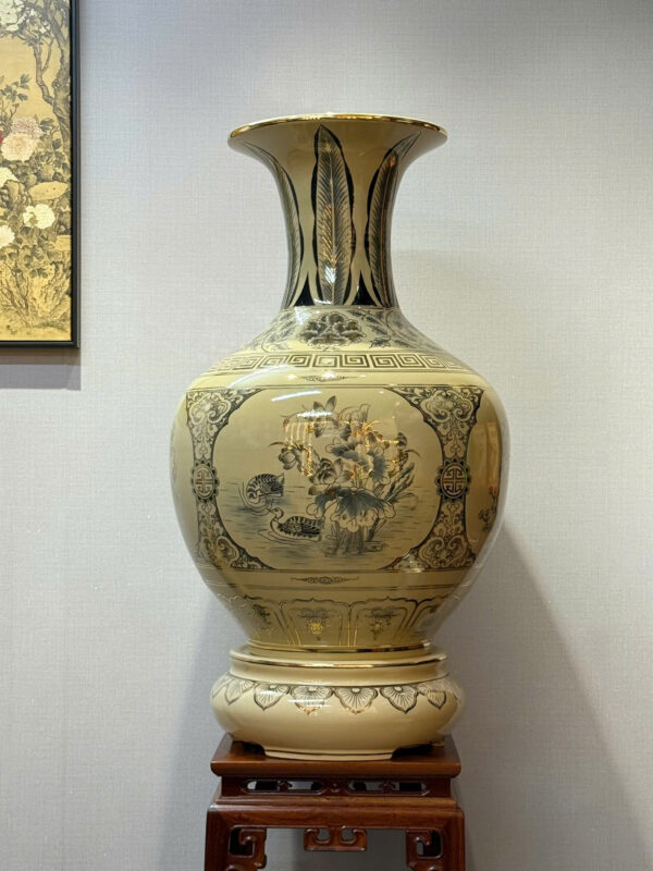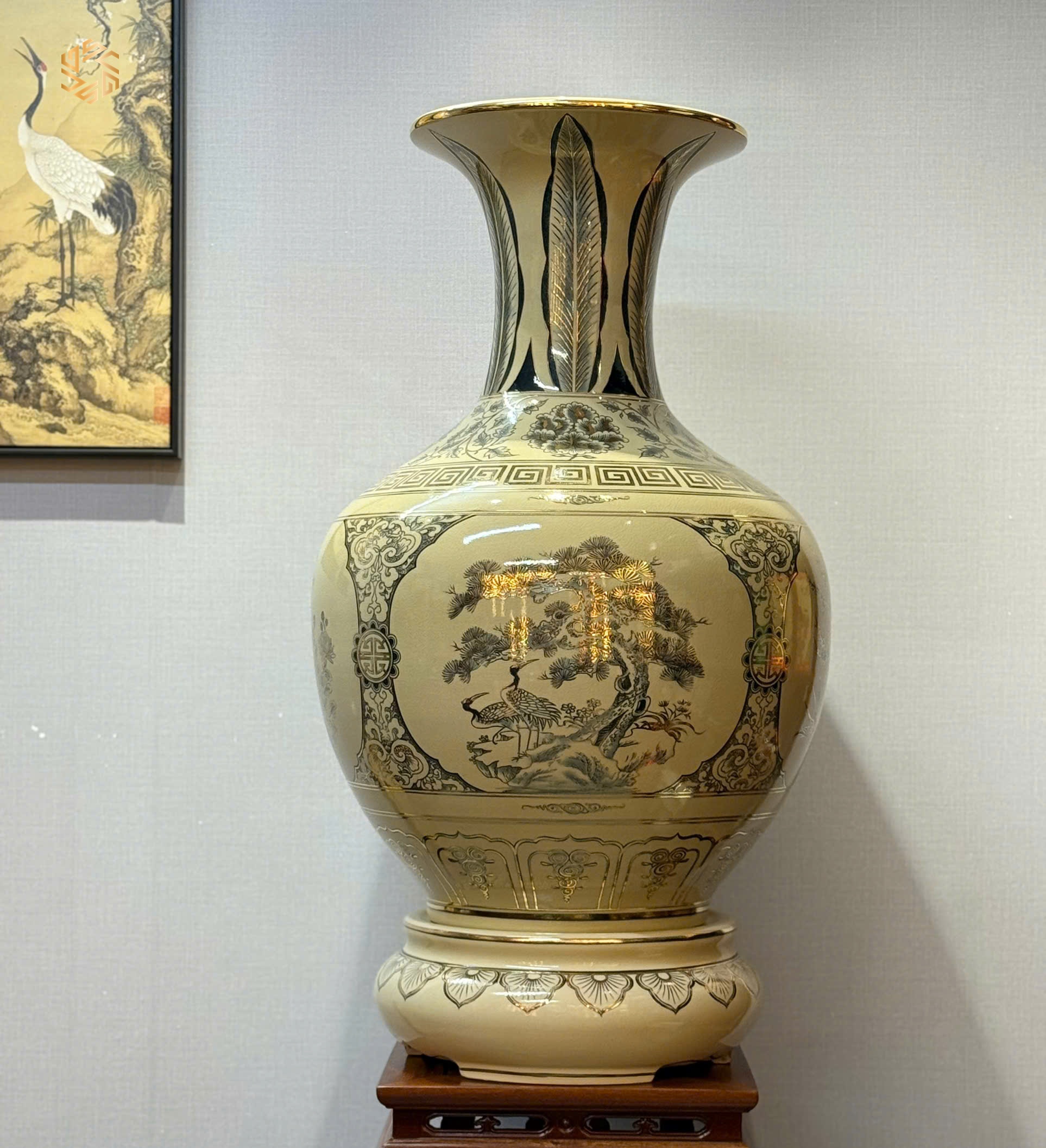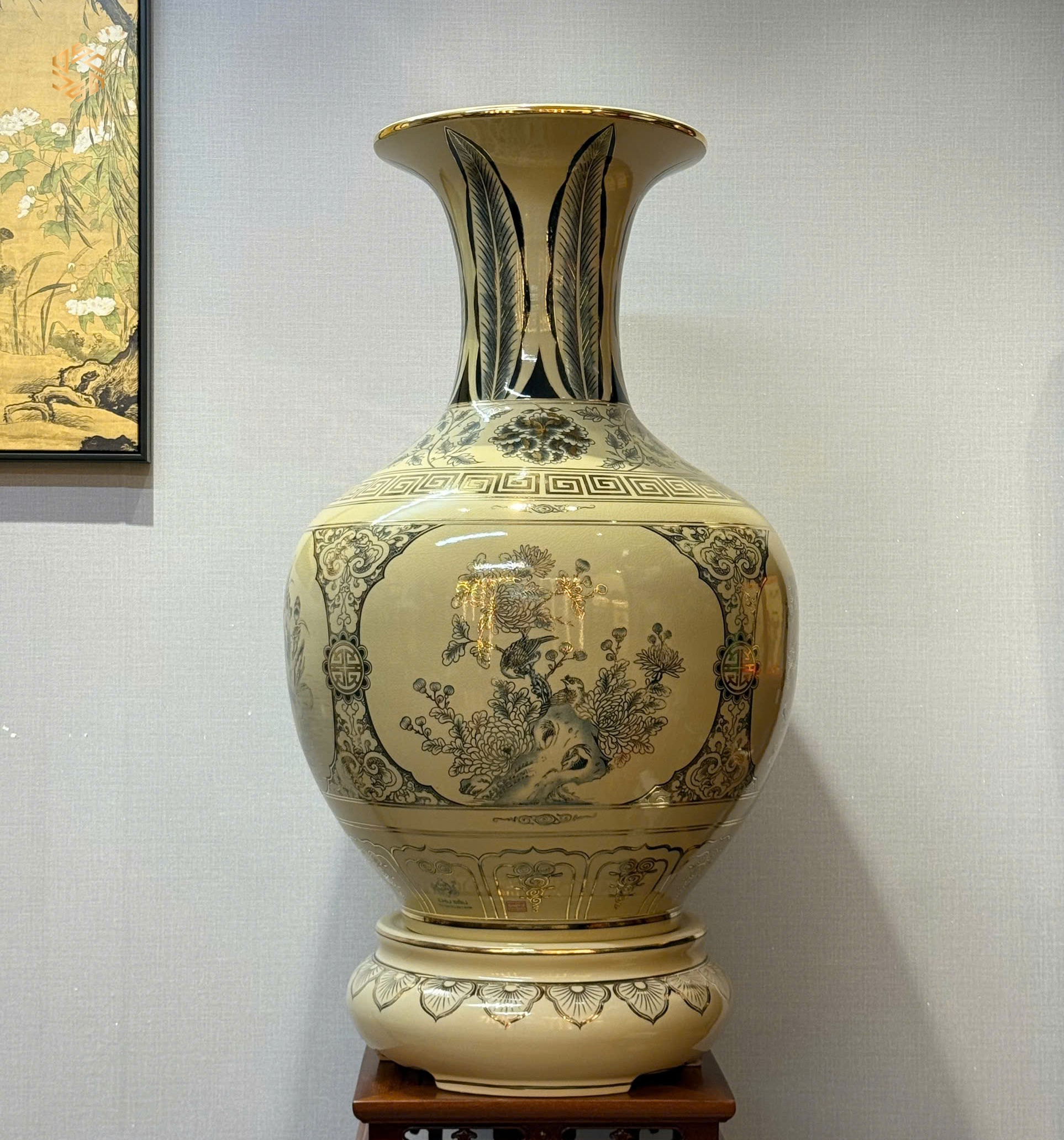 Review Bình Phú Quý Gốm Chu Đậu H85 Hoạ Tiết Tứ Cảnh Bốn Mùa Xuân Hạ Thu Đông Vẽ Vàng 24K BPQXHTD10
