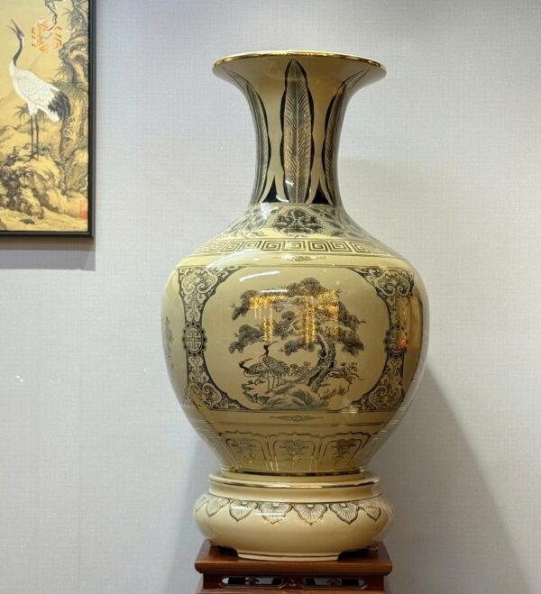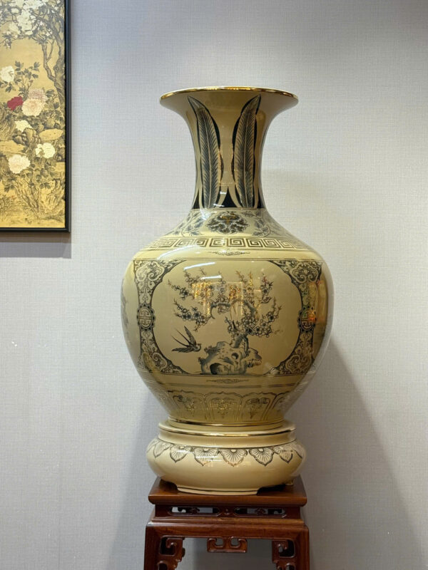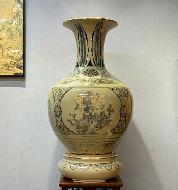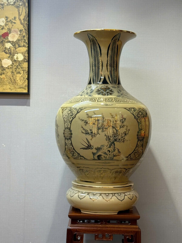 Bình Phú Quý Gốm Chu Đậu H85 Hoạ Tiết Tứ Cảnh Bốn Mùa Xuân Hạ Thu Đông Vẽ Vàng 24K BPQXHTD10