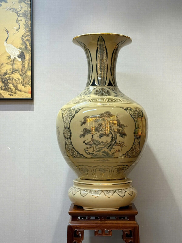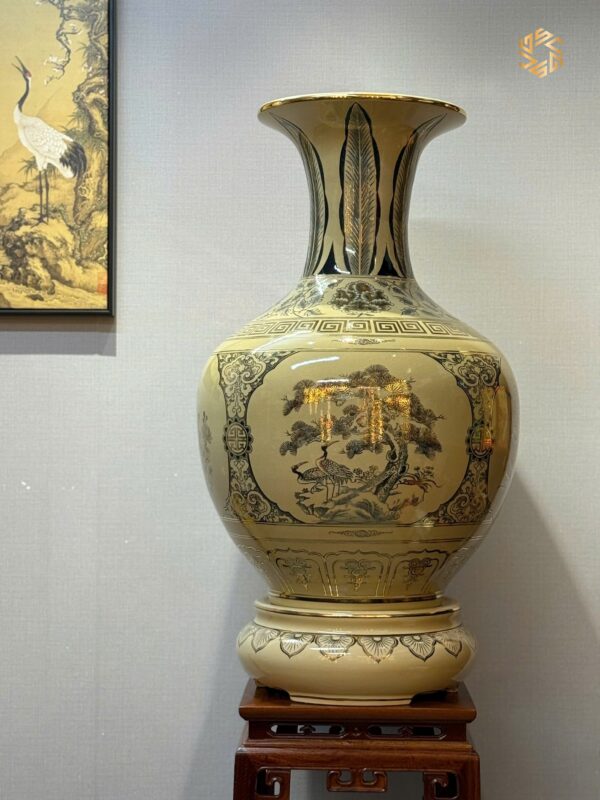 - Chất liệu: Gốm vẽ vàng 24K, thủ công hoàn toàn. Phiên bản nghệ nhân làng nghề GỐM CHU ĐẬU