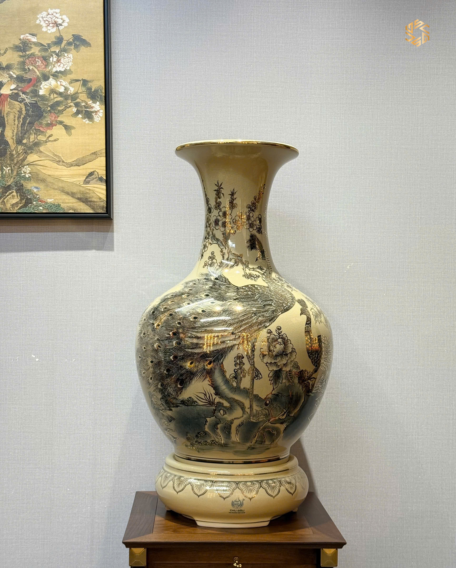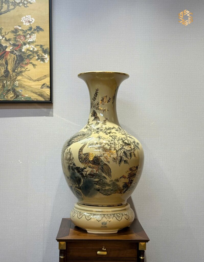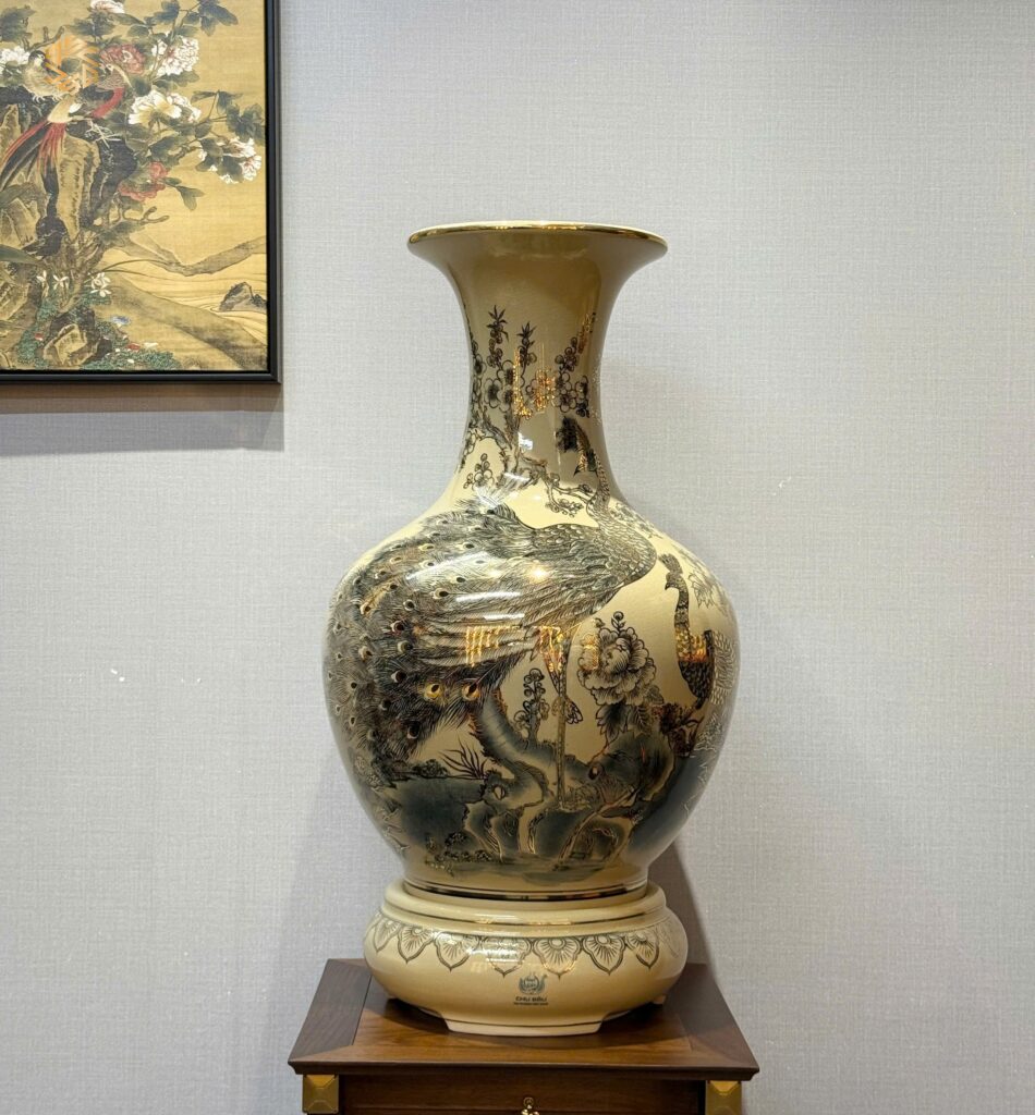 Review Bình Phú Quý Gốm Chu Đậu H85 Hoạ Tiết Chim Công Hoa Đào Vẽ Vàng 24K PQCĐ05