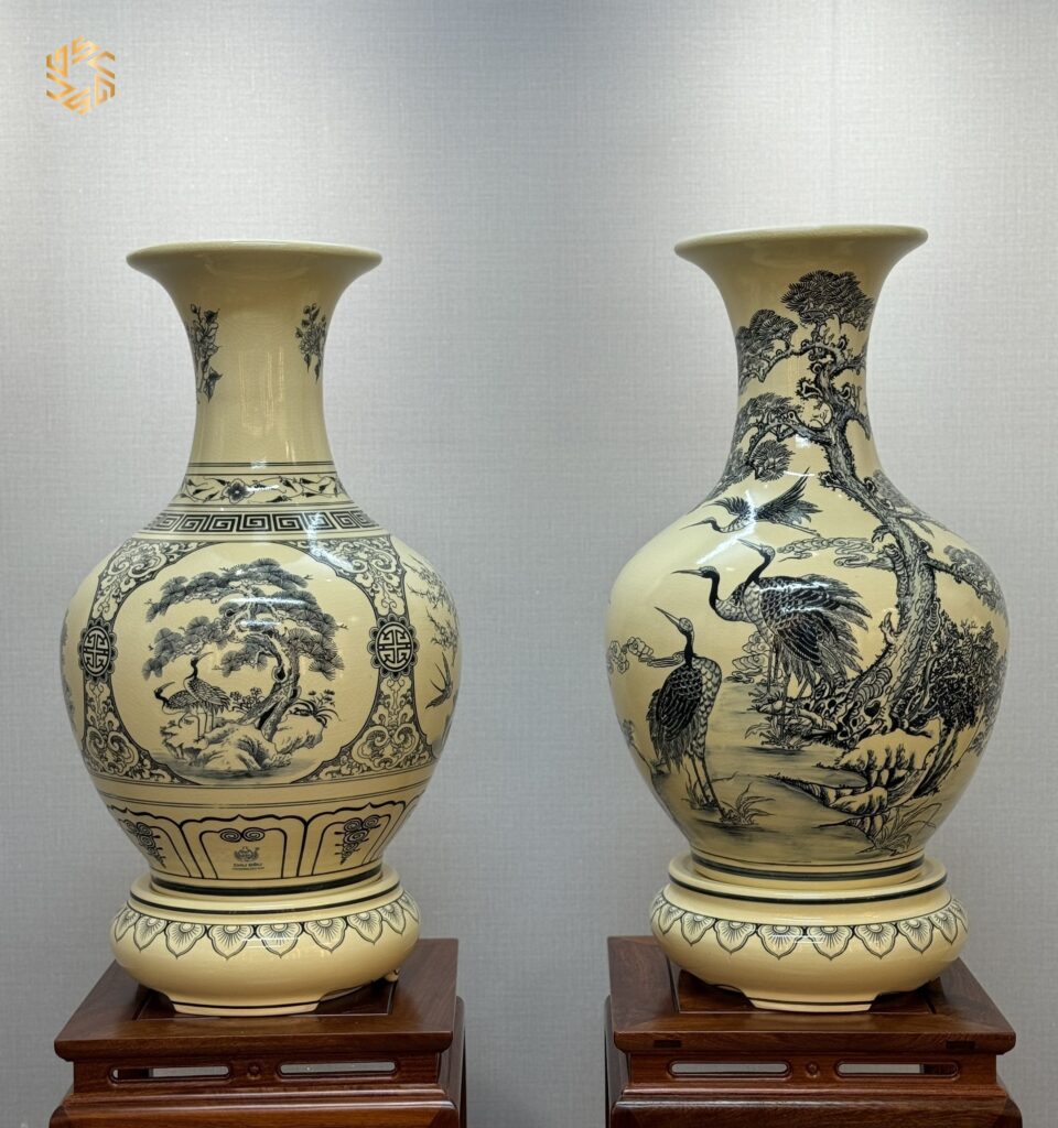 Review Cặp Bình Phú Quý Gốm Chu Đậu H65 Hoạ Tiết Tùng Hạc & Tứ Cảnh Truyền Thống
