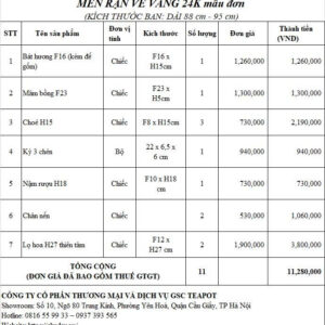 - Giá đã bao gồm thuế VAT.