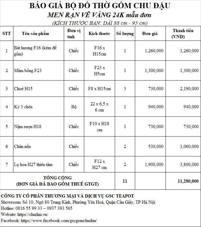 Review Bộ Đồ Thờ Chu Đậu Men Gốm Vẽ Vàng 24K Hoạ Tiết Hoa Mẫu Đơn Ban Dài : 81cm – 88 cm