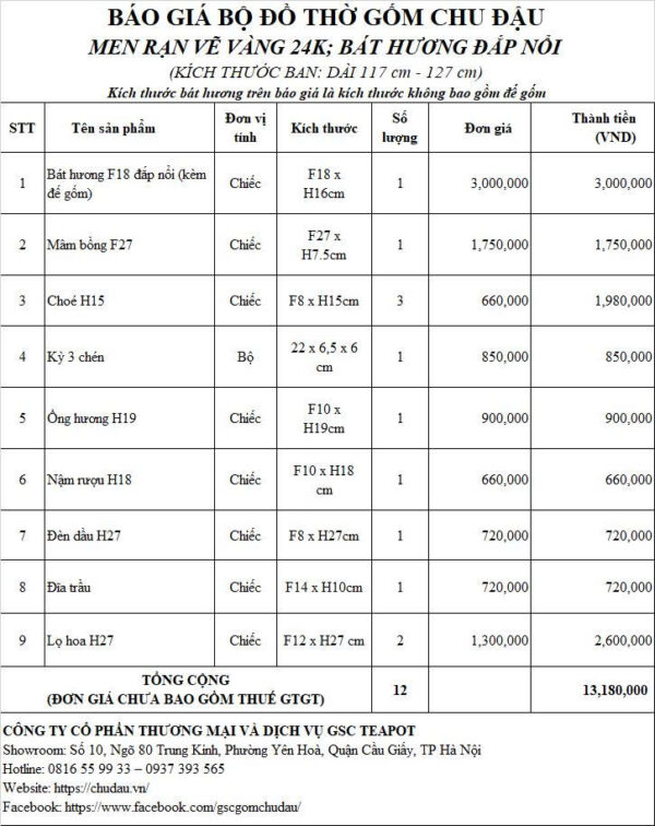 - Chất liệu: Gốm chu đậu vẽ vàng 24k tinh xảo, tinh tế và sang trọng, ấn tượng mọi không gian. Bát hương đắp nổi tinh xảo bậc nhất.