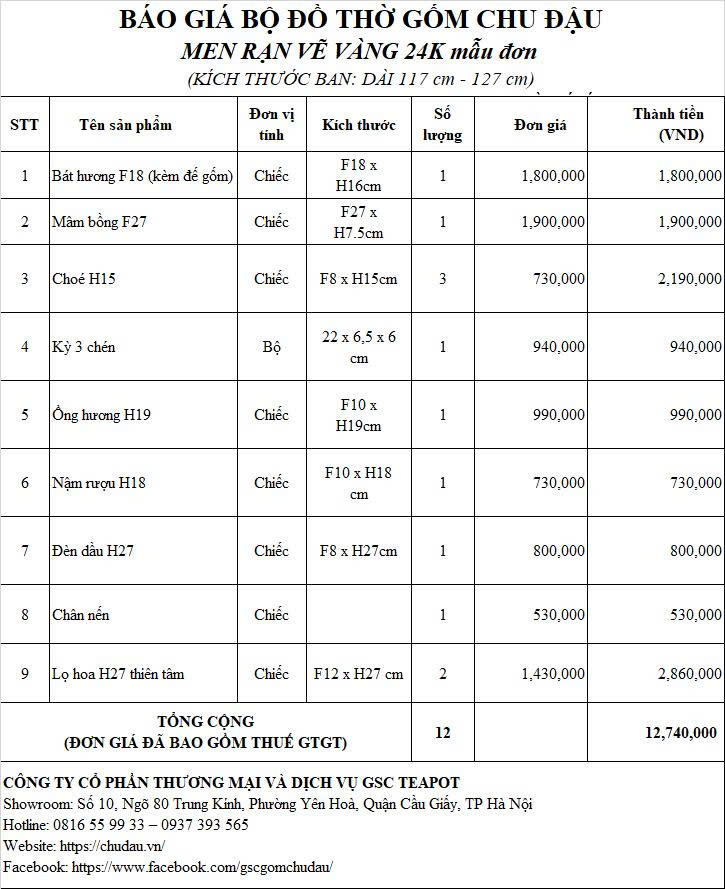 Review Bộ Đồ Thờ Gốm Chu Đậu Hoạ Tiết Mẫu Đơn Men Gốm Vẽ Vàng 24K Ban Dài 95 cm – 117 cm