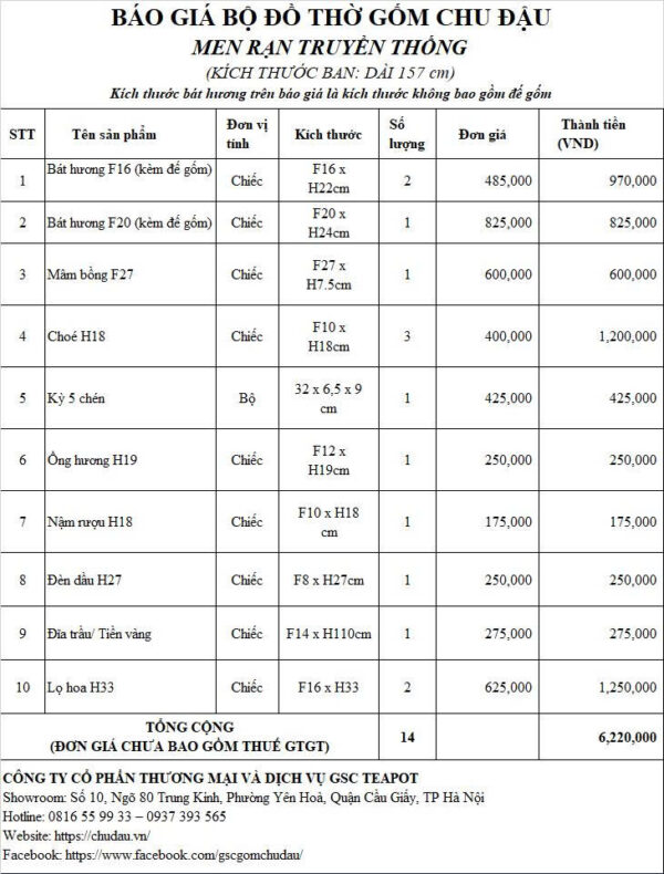 Review Bộ Đồ Thờ Gốm Chu Đậu Hoạ Tiết Rồng Men Truyền Thống Ban Dài 157cm