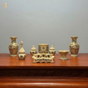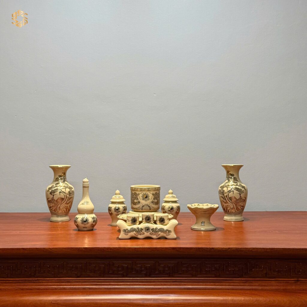 Review Bộ Đồ Thờ Gốm Chu Đậu Hoạ Tiết Rồng Vẽ Vàng 24K Ban 81cm