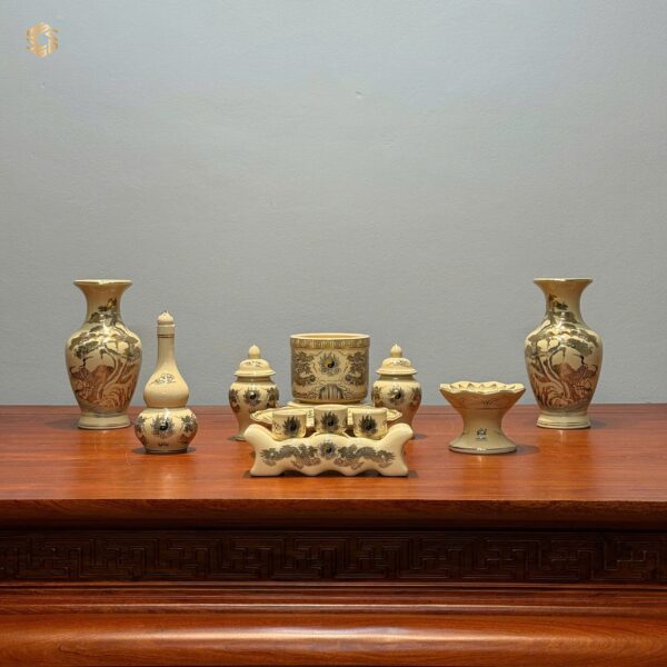 Bộ Đồ Thờ Gốm Chu Đậu Hoạ Tiết Rồng Vẽ Vàng 24K Ban 81cm