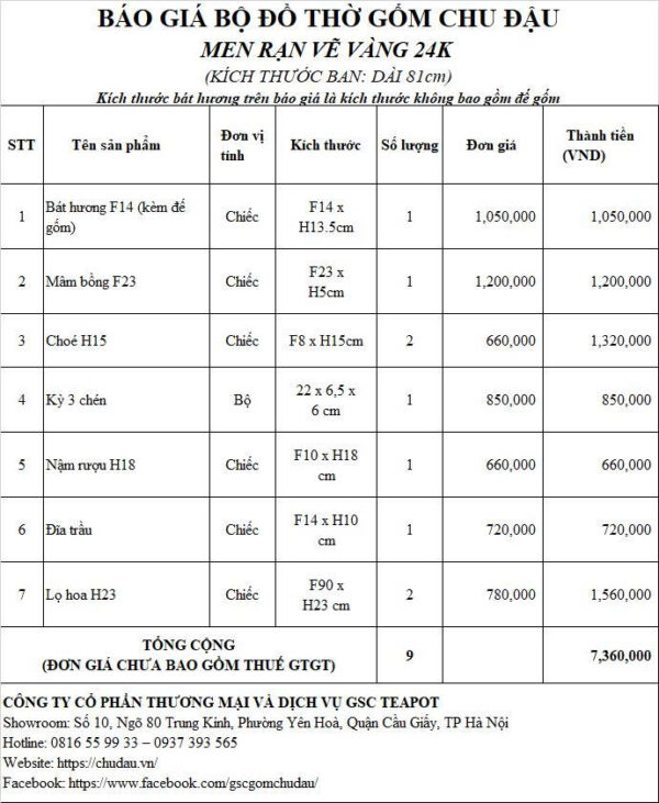 - Chất liệu: Gốm Chu Đậu vẽ vàng 24k, ý nghĩa tinh xảo, trong mọi không gian văn hoá Việt Nam.