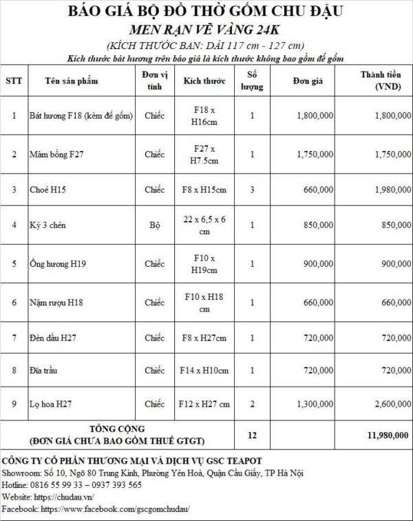 Review Bộ Đồ Thờ Gốm Chu Đậu Hoạ Tiết Sen Vẽ Vàng 24K Ban 117cm – 127cm