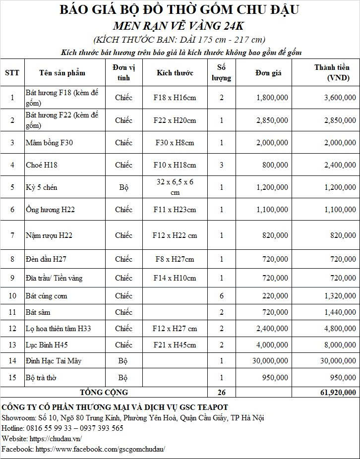 Review Bộ Đồ Thờ Gốm Chu Đậu Kết Hợp Đỉnh Hạc Men Gốm Vẽ Vàng 24K Hoạ Tiết Hoa Mẫu Đơn Ban Dài 175 cm – 217 cm