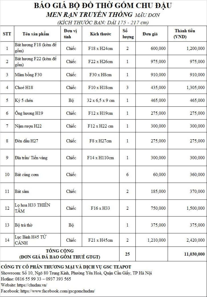 Review Bộ Đồ Thờ Gốm Chu Đậu Men Gốm Truyền Thống Hoạ Tiết Hoa Mẫu Đơn Ban dài 175 cm – 217 cm