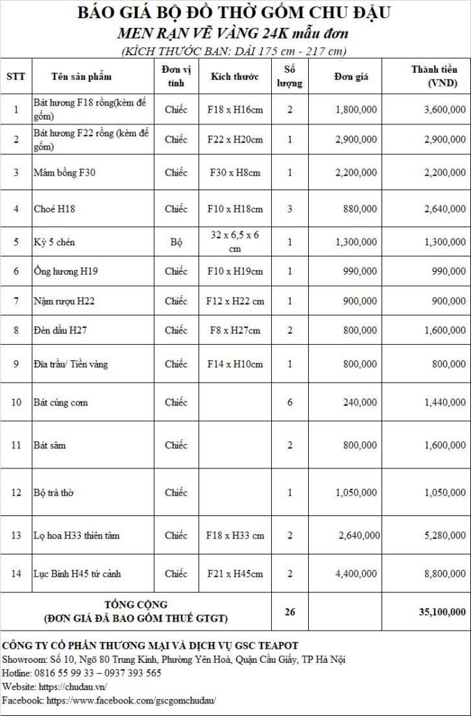 Review Bộ Đồ Thờ Gốm Chu Đậu Men Gốm Vẽ Vàng 24K Hoạ Tiết Hoa Mẫu Đơn Ban dài 175 cm – 217 cm