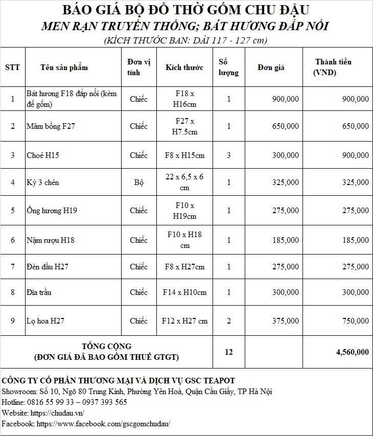 Review Bộ Đồ Thờ Gốm Chu Đậu Men Truyền Thống Bát Hương Đắp Nổi Tinh Xảo Ban Dài 1m17 – 1m27