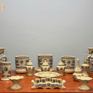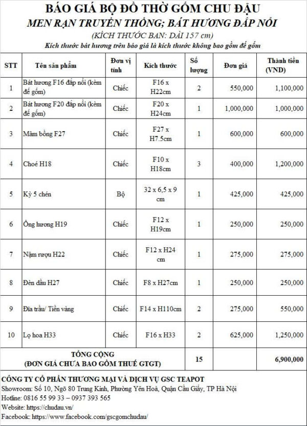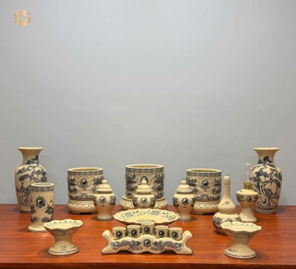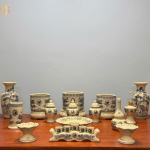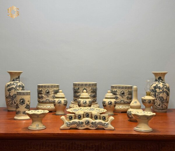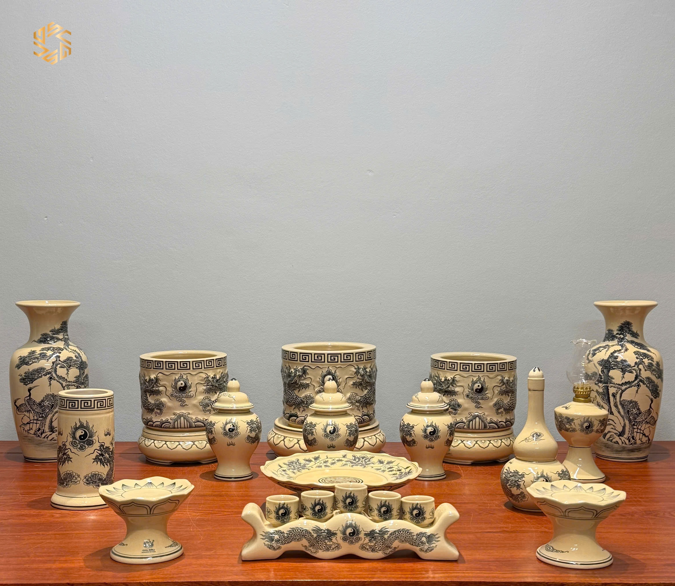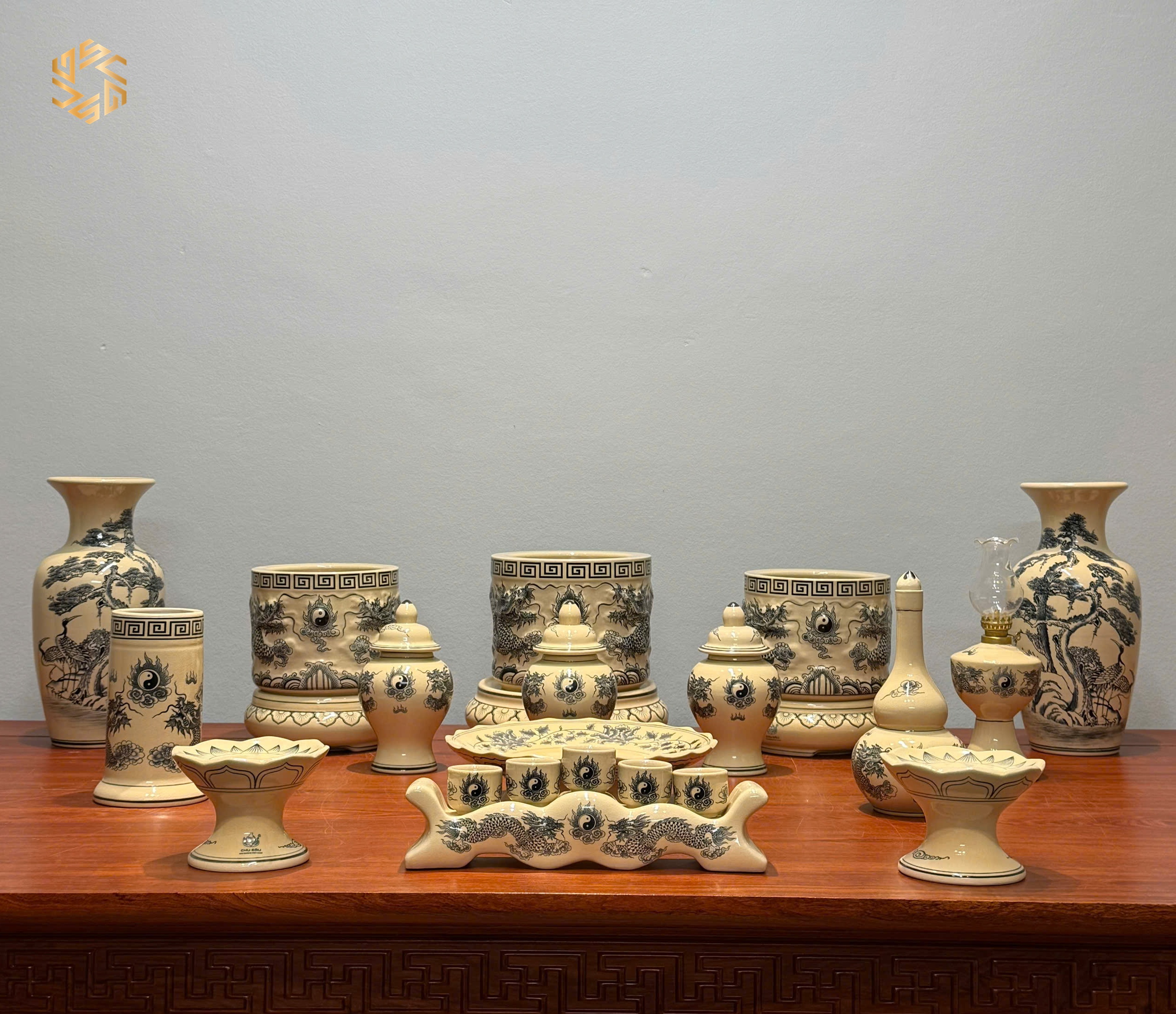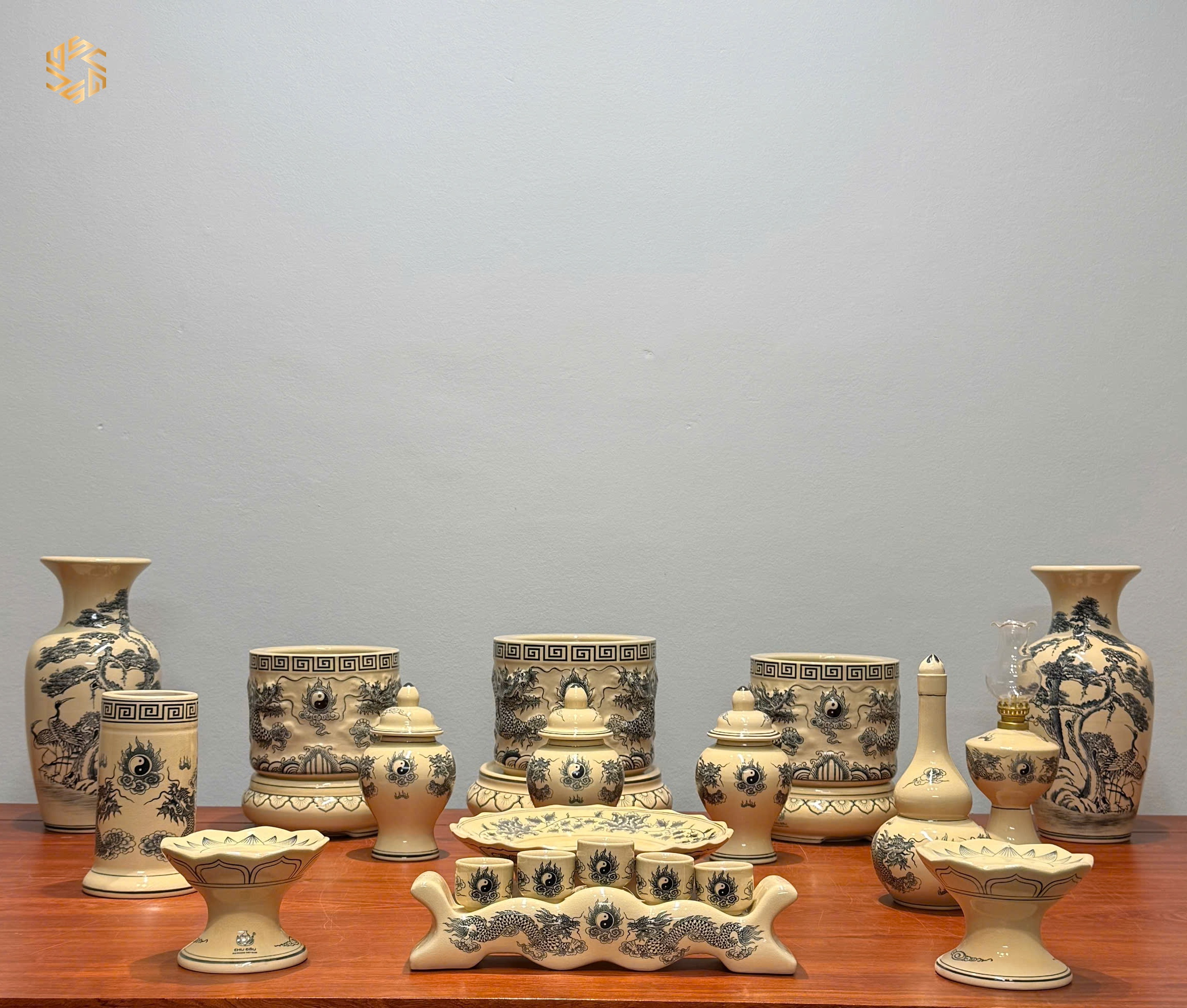 Bộ Đồ Thờ Gốm Chu Đậu Men Truyền Thống Bát Hương Đắp Nổi Tinh Xảo Ban Dài 157cm