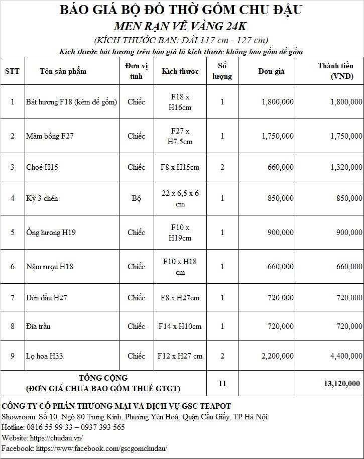 Review Bộ đồ thờ Gốm Chu Đậu hoạ tiết sen vẽ vàng 24k Ban dài 95 cm – 117 cm