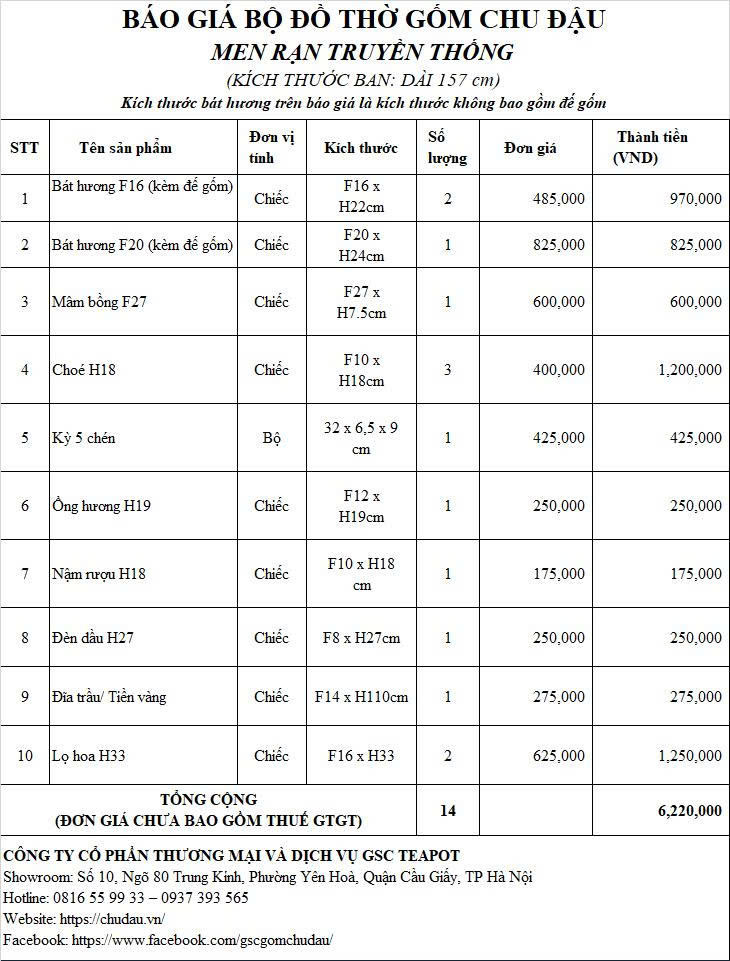 Review Bộ đồ thờ Gốm Chu Đậu men gốm truyền thống Ban dài 127 cm – 157 cm