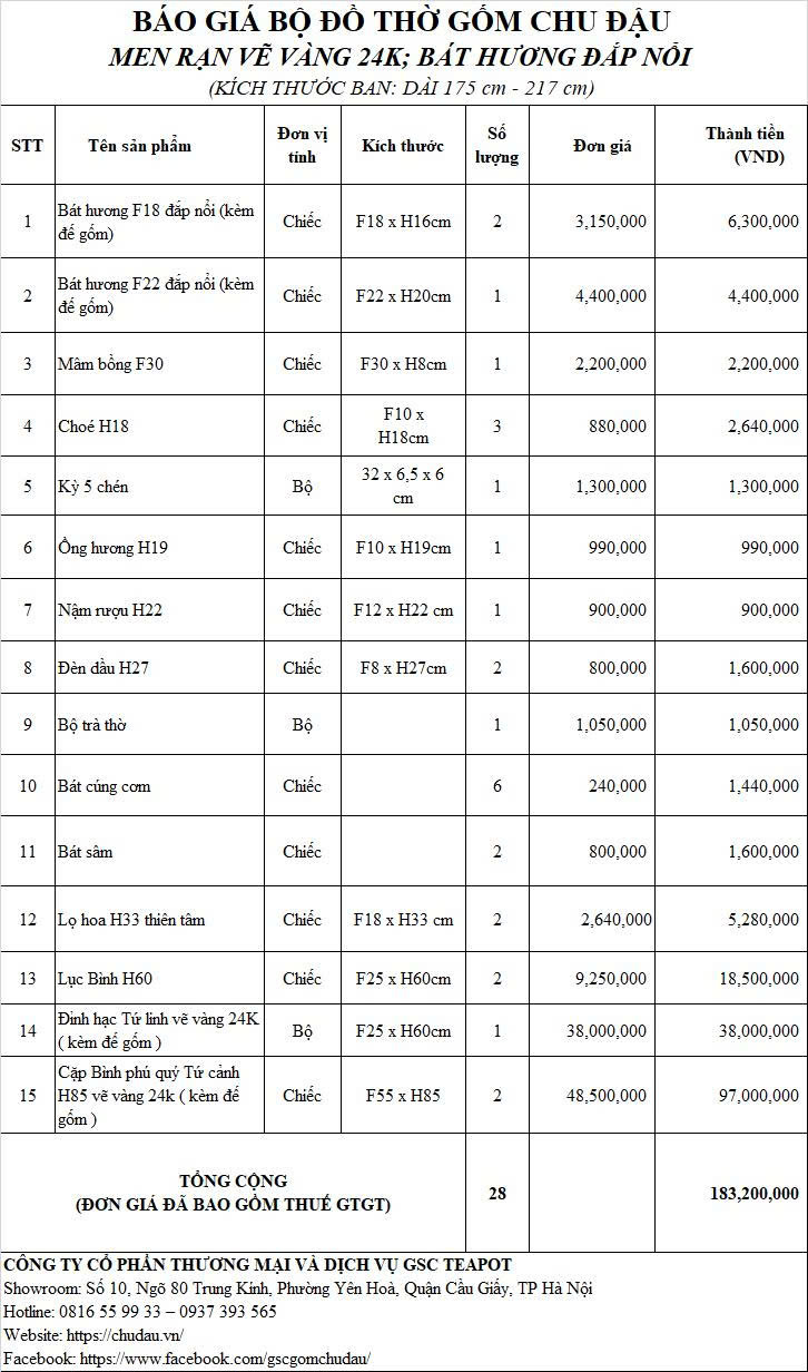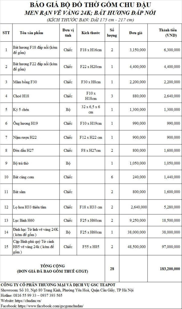 Review Bộ Đồ Thờ Vẽ Vàng 24K & Cặp Bình Phú H85 Vẽ Vàng 24K Tinh Xảo Ban 217cm