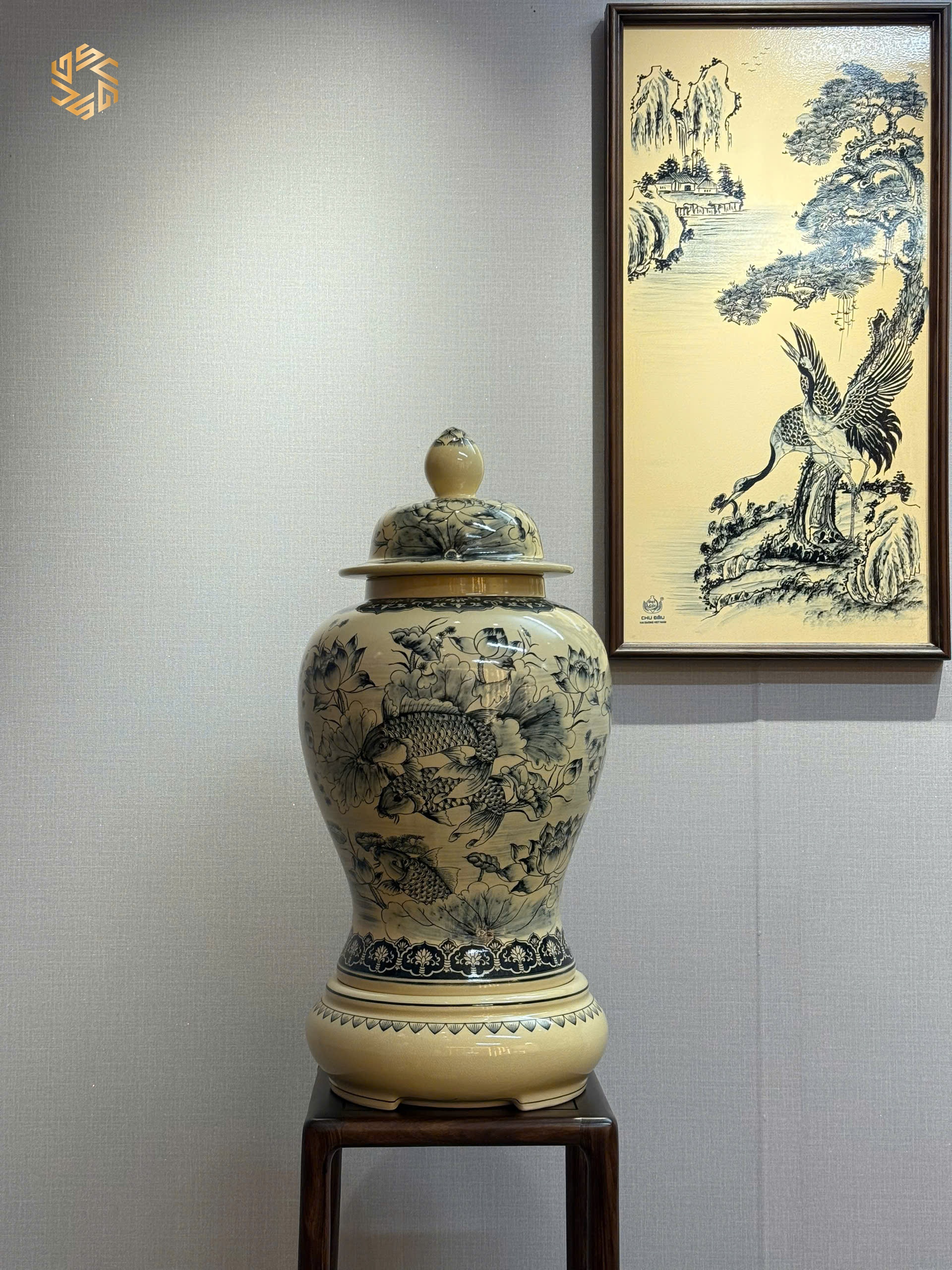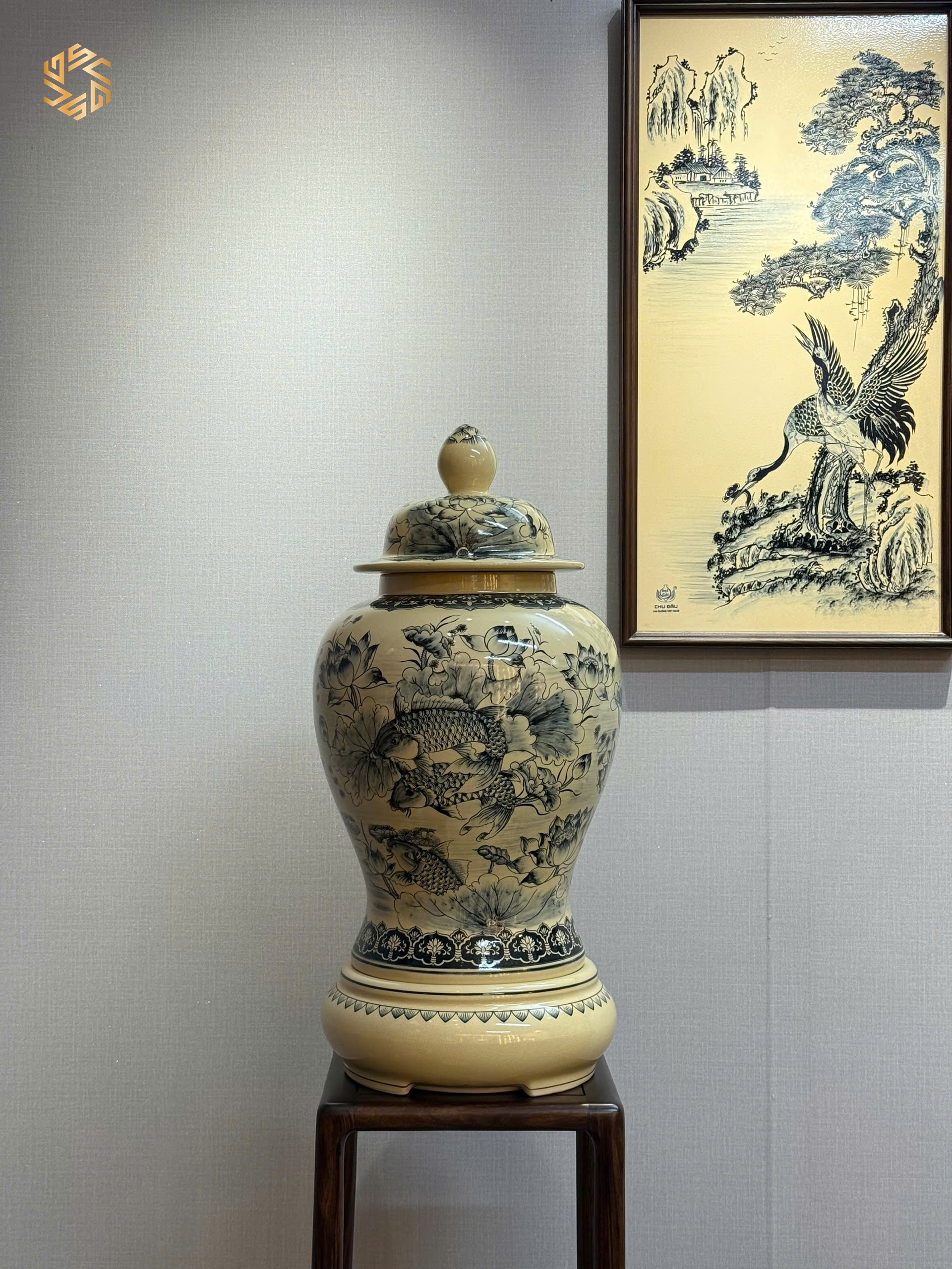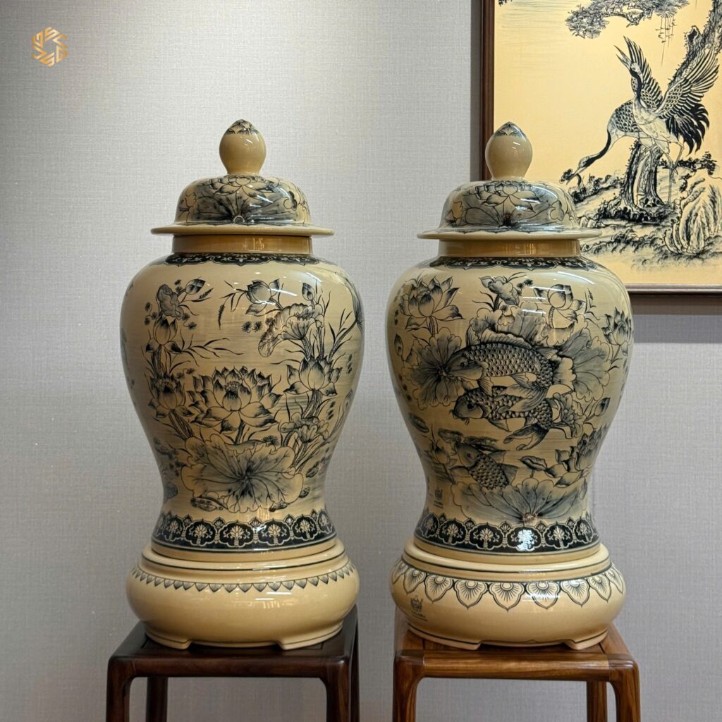- Hoạ tiết Hoa Sen Cá Chép – Men gốm truyền thống.