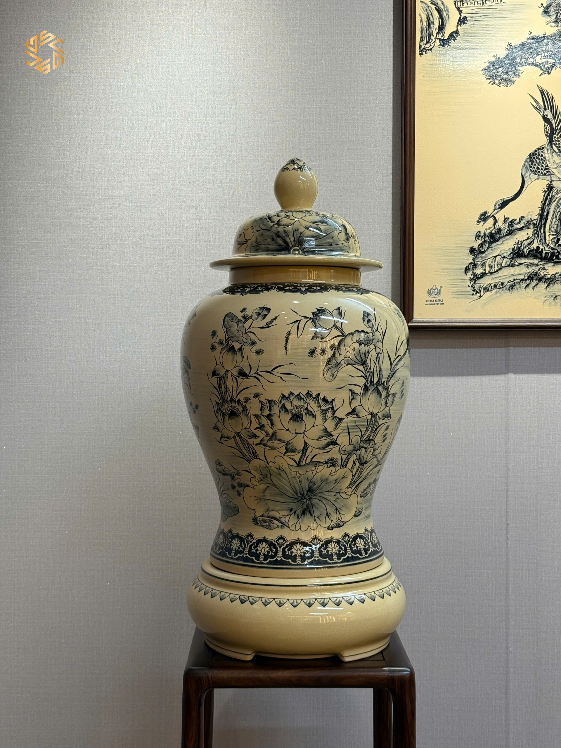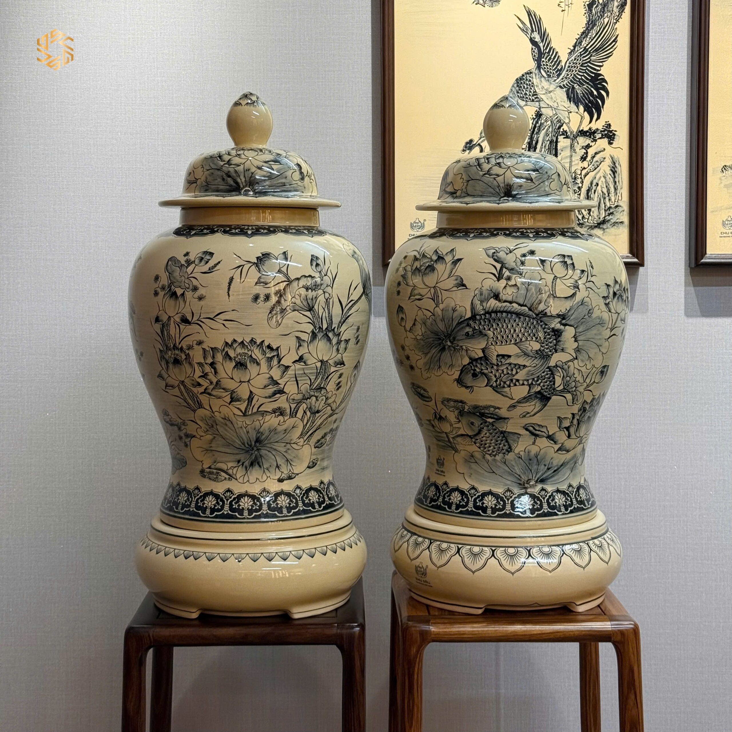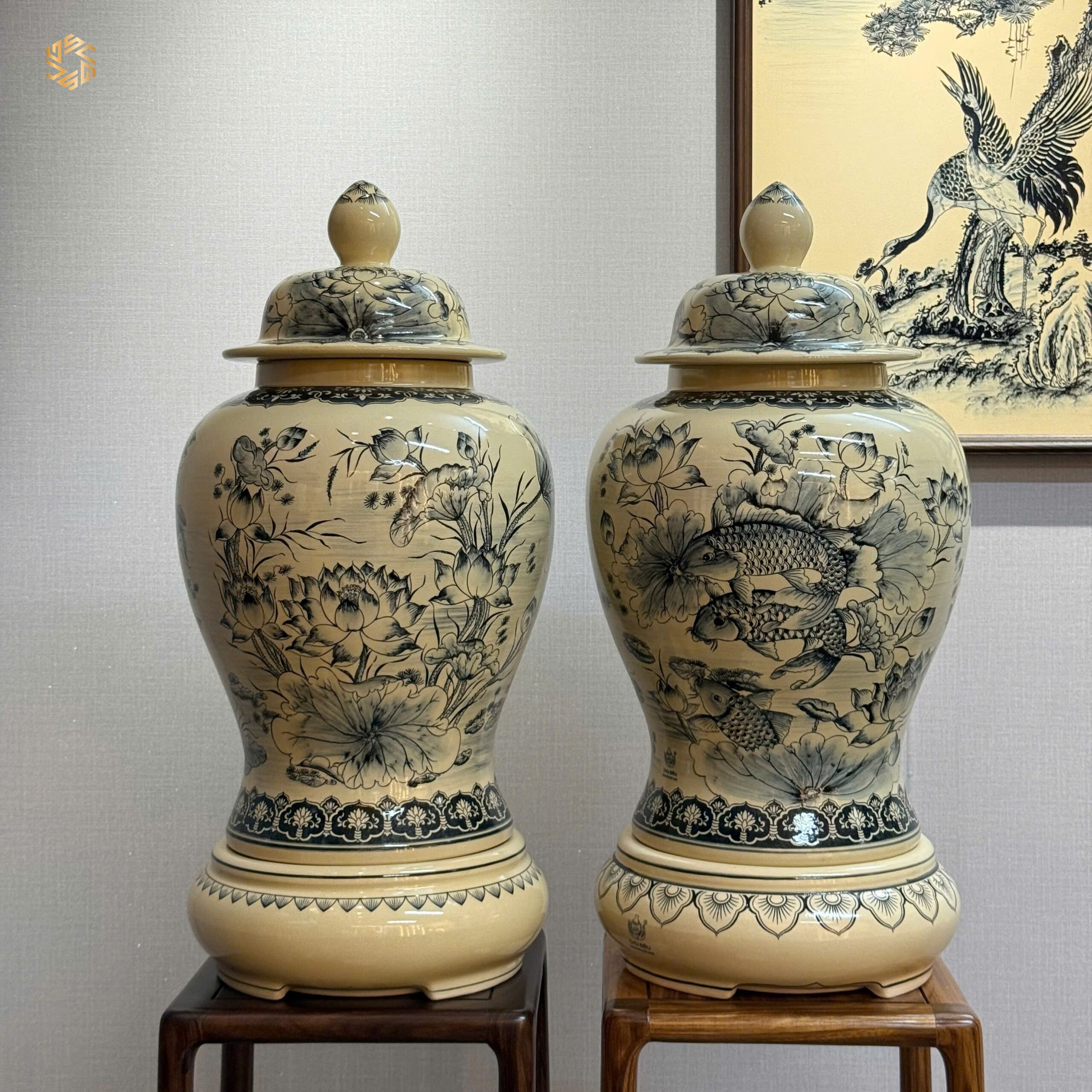 - Hoạ tiết Hoa Sen Cá Chép – Men gốm truyền thống.