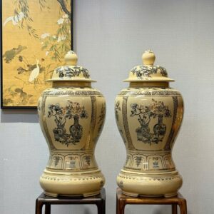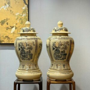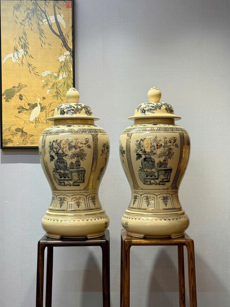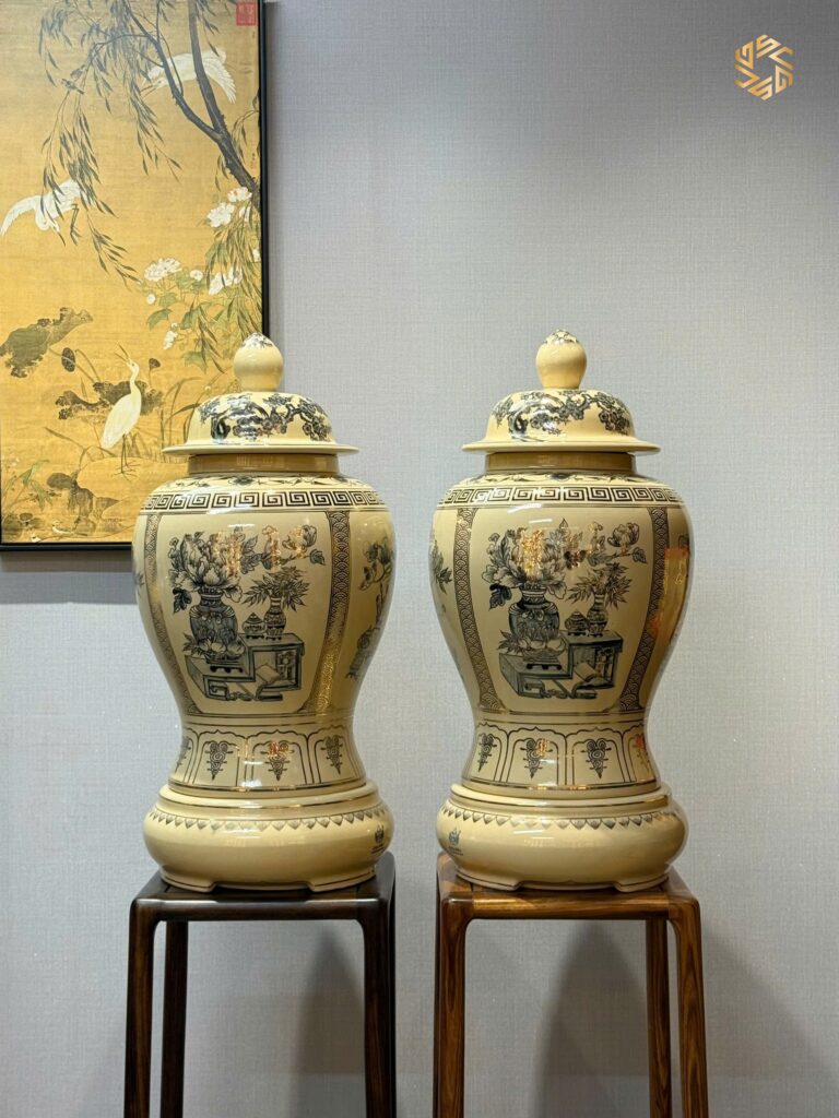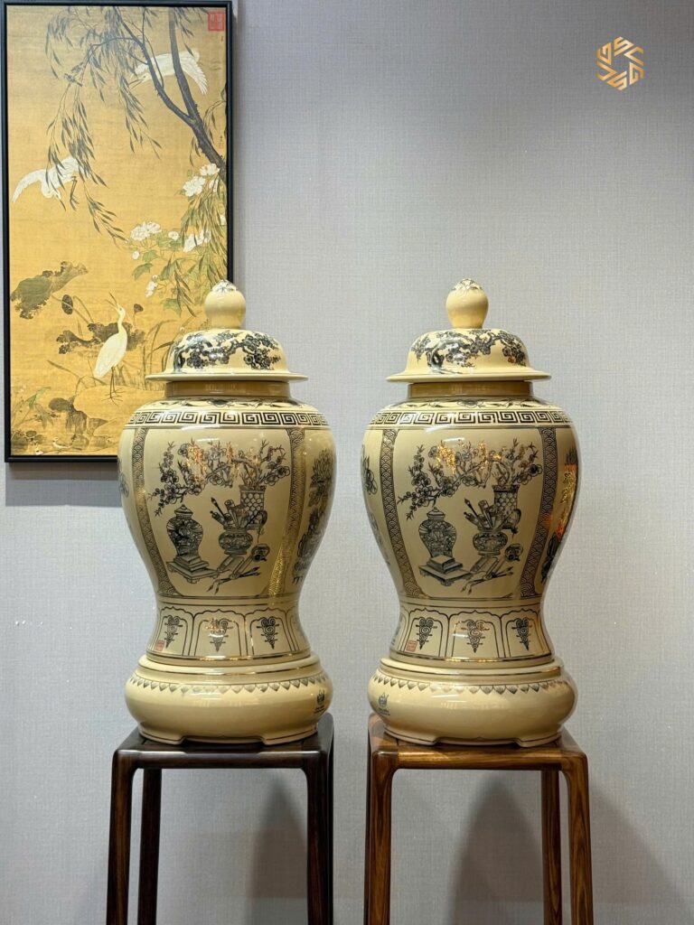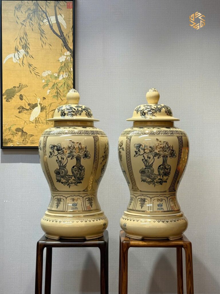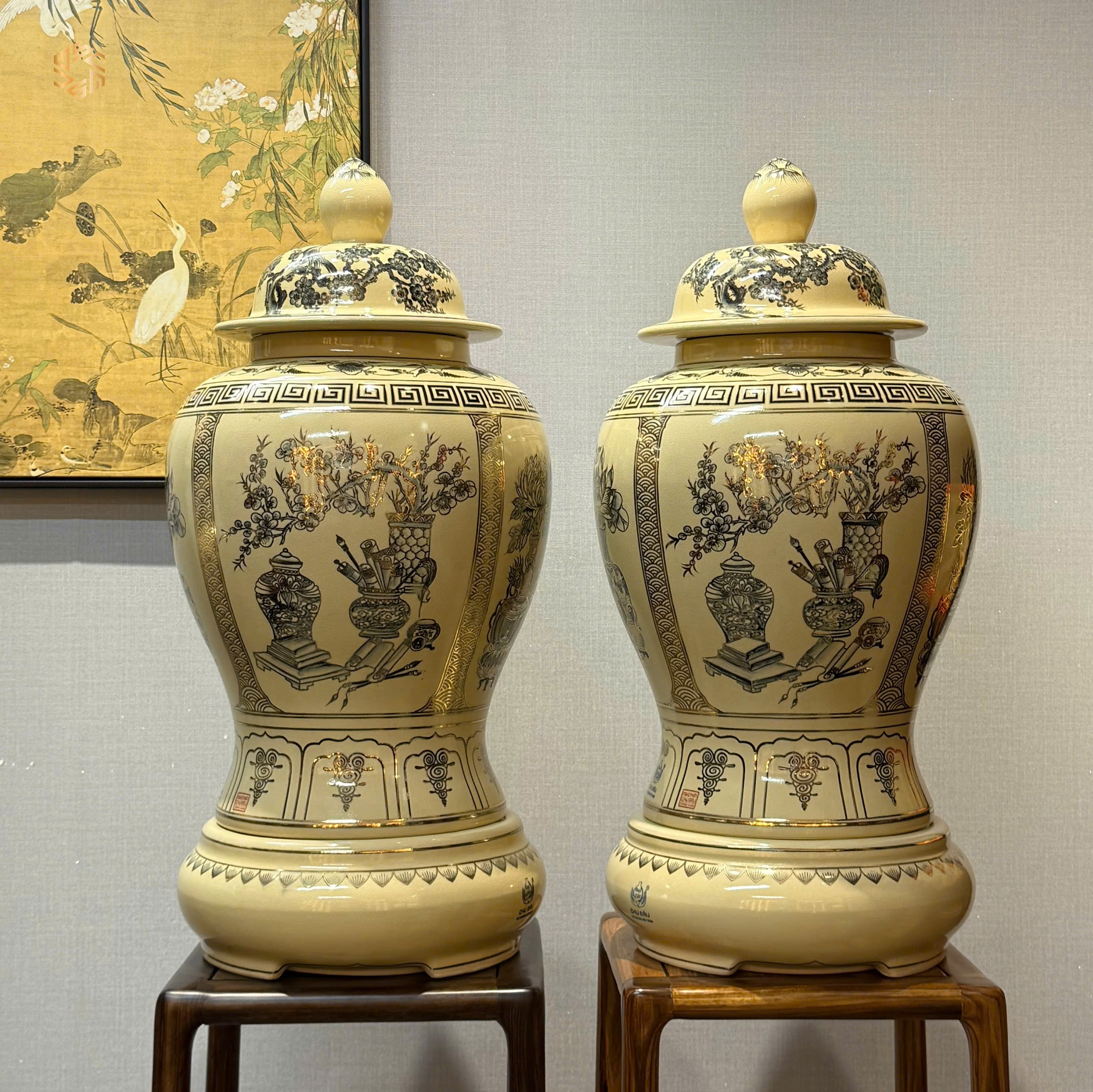 Cặp Choé H60 Tứ Cảnh Tứ Cảnh Cổ Đồ Vẽ Vàng 24K Tinh Xảo