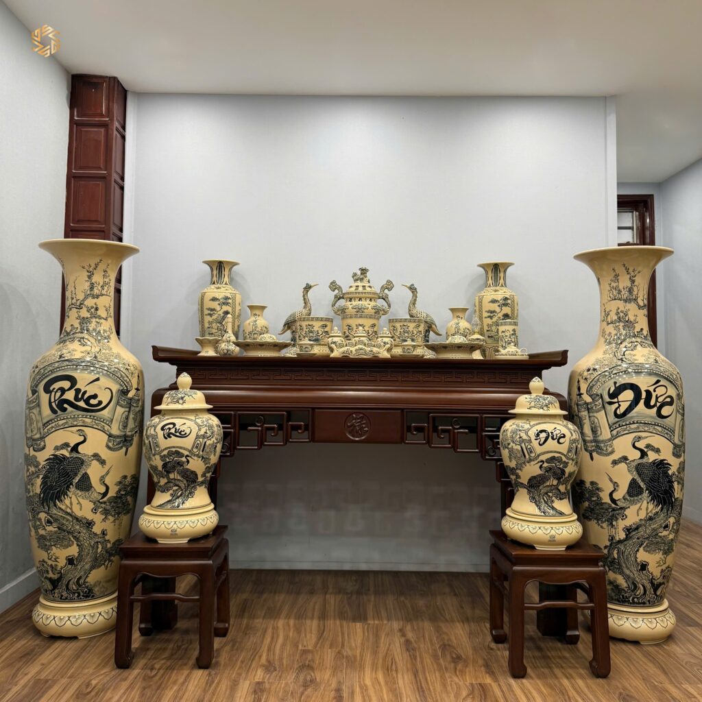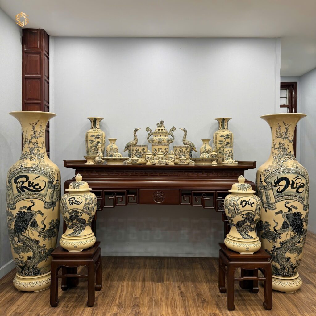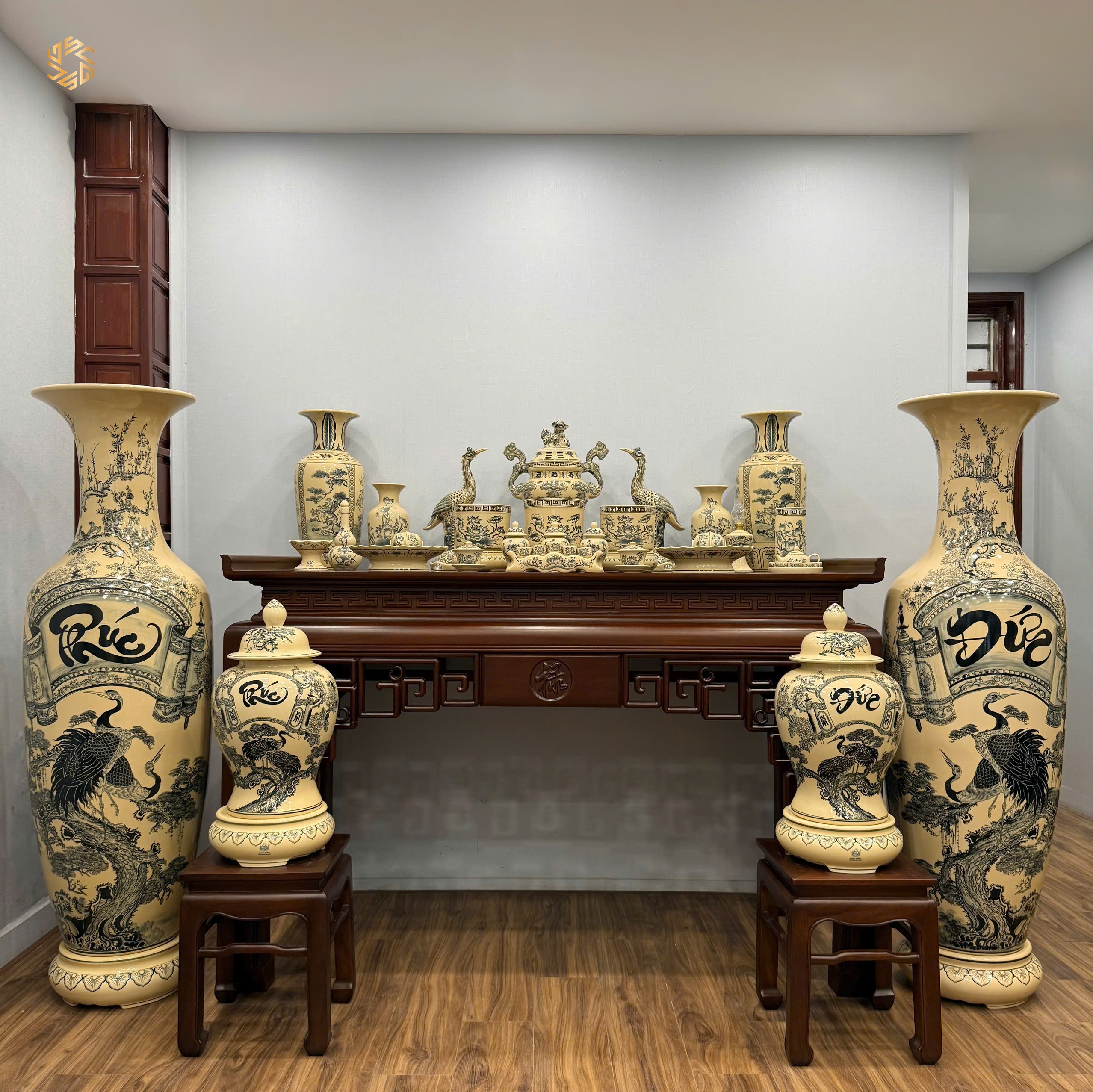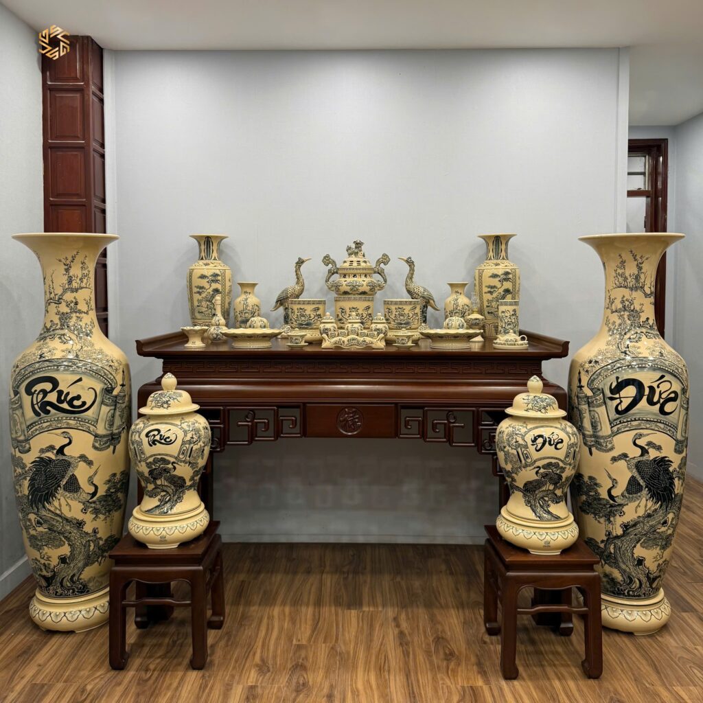 Combo Gốm Tâm Linh & Lộc Bình Phúc Đức 1M75 & Choé Phúc Đức H60 Men Gốm Truyền Thống