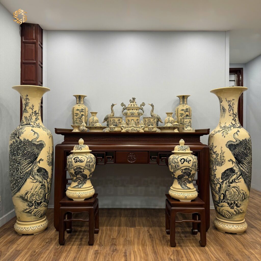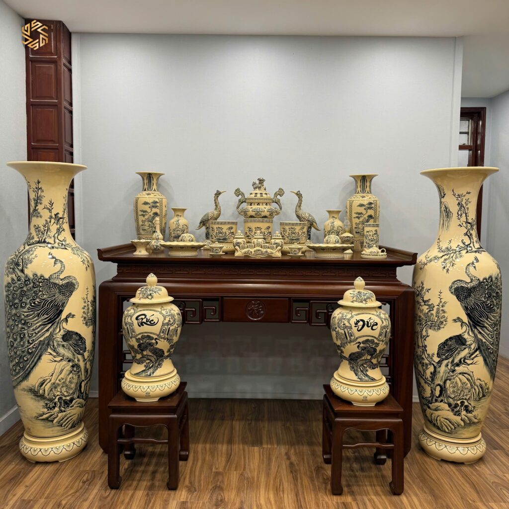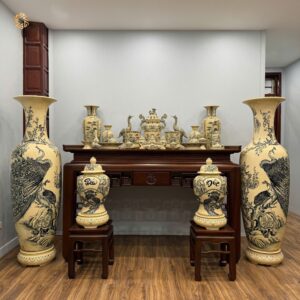 Review Combo Gốm Tâm Linh & Lộc Bình Công Đào1M75 & Choé Phúc Đức H60 Men Gốm Truyền Thống