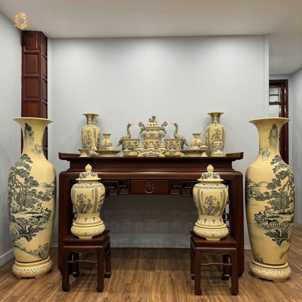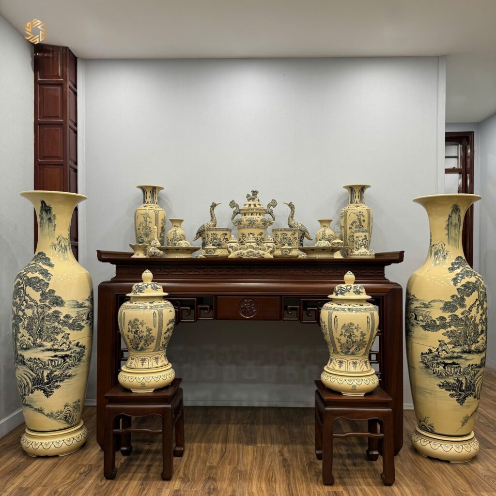 Combo Gốm Tâm Linh & Lộc Bình Sơn Thuỷ Hữu Tình 1M75 & Choé Tứ Cảnh H60 Men Gốm Truyền Thống