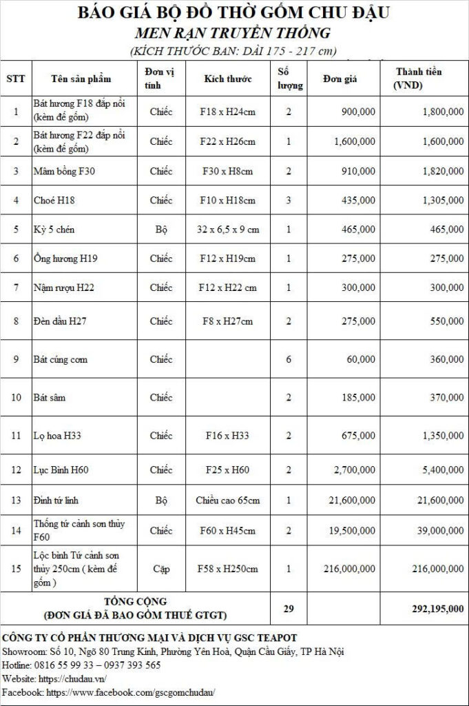 • Một trong những combo tinh hoa nhất của GỐM CHU ĐẬU.