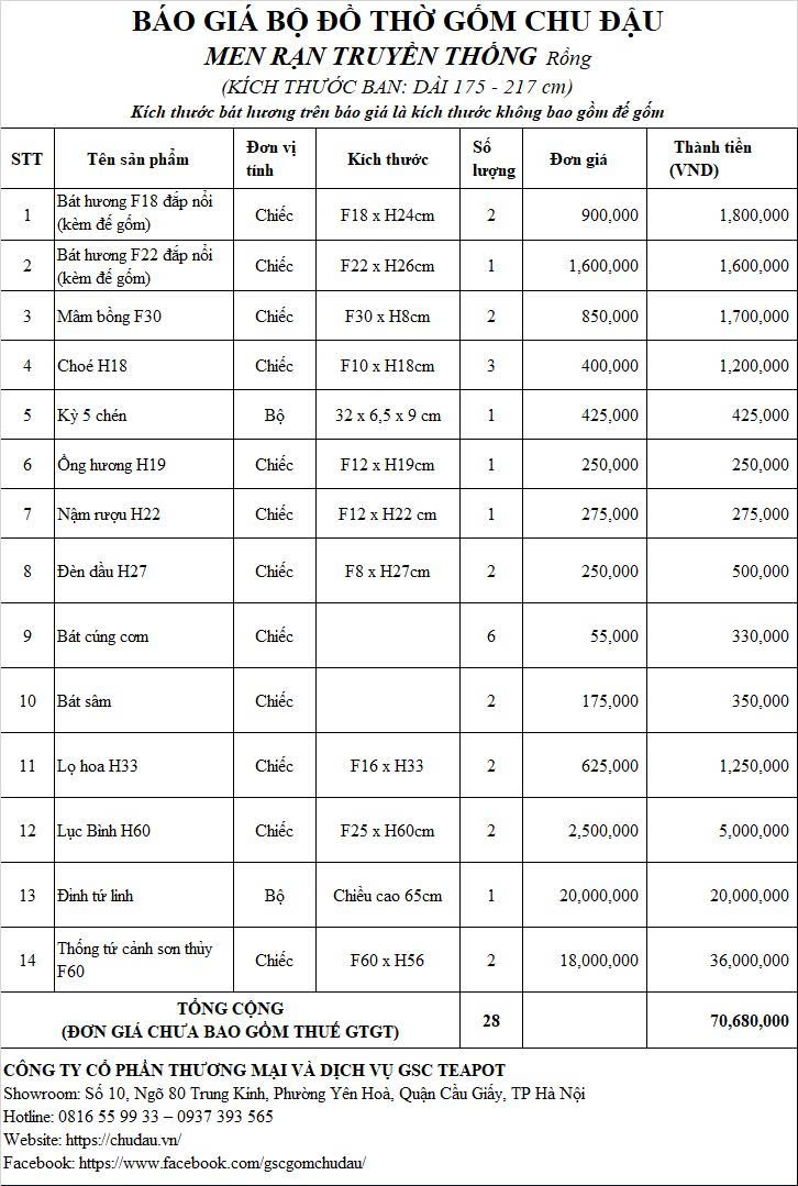 - Xuất xứ : GỐM CHU ĐẬU