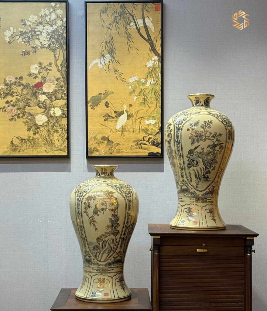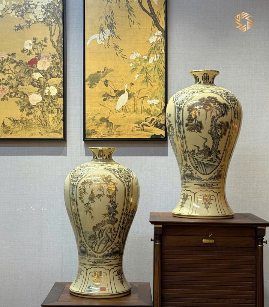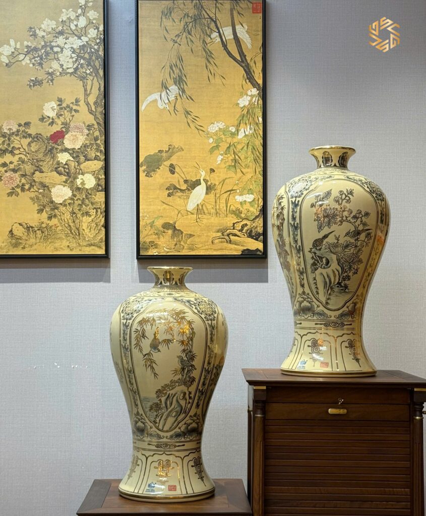 Review Cặp Mai Bình H60 Gốm Chu Đậu Hoạ Tiết Tứ Cảnh Vẽ Vàng 24K Tinh Xảo.