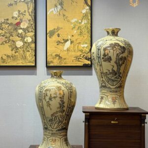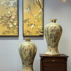 Cặp Mai Bình H60 Gốm Chu Đậu Hoạ Tiết Tứ Cảnh Vẽ Vàng 24K Tinh Xảo.