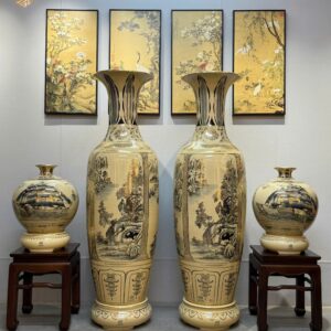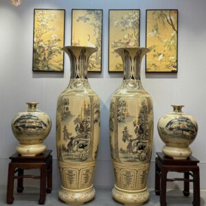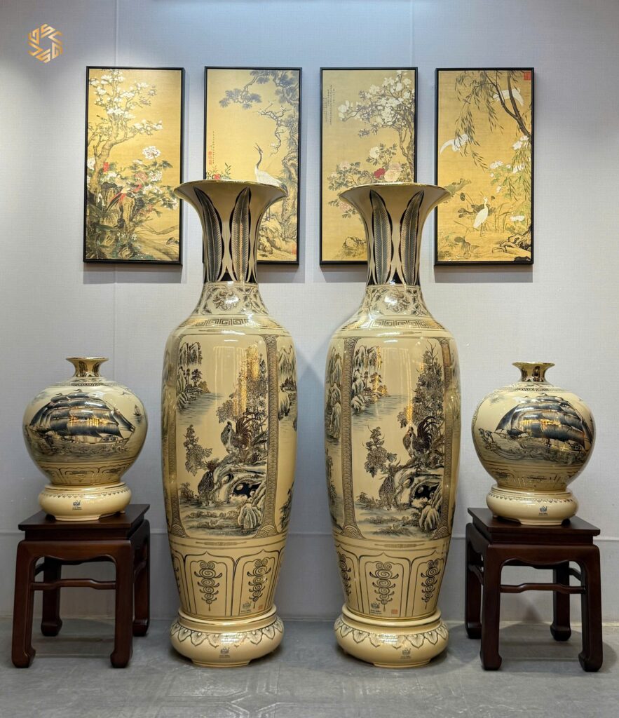 Review Combo Gốm Chu Đậu Lộc Bình 1M65 Tứ Cảnh Sơn Thuỷ & Bình Hút Lộc H45 24K Tinh Xảo
