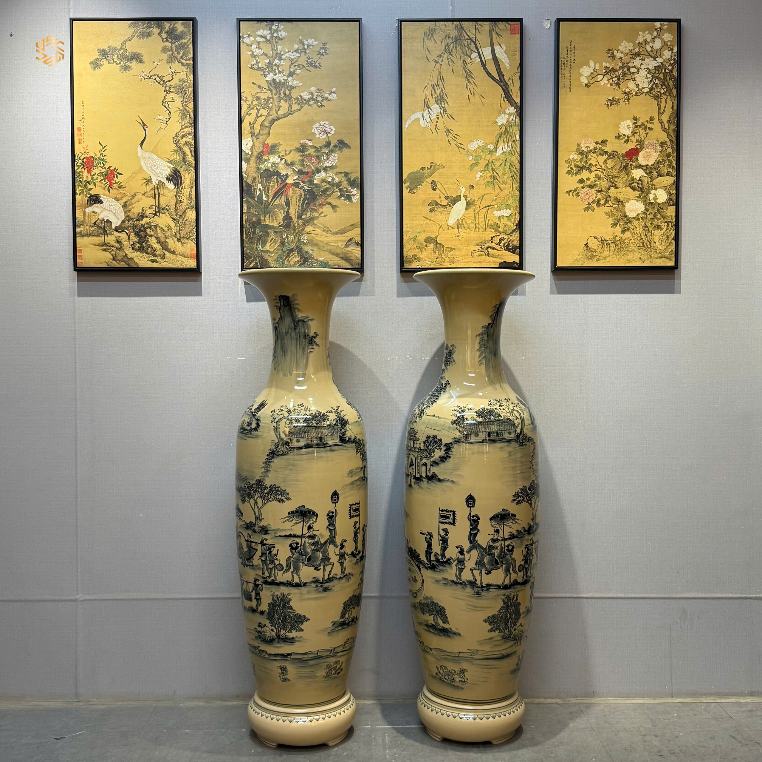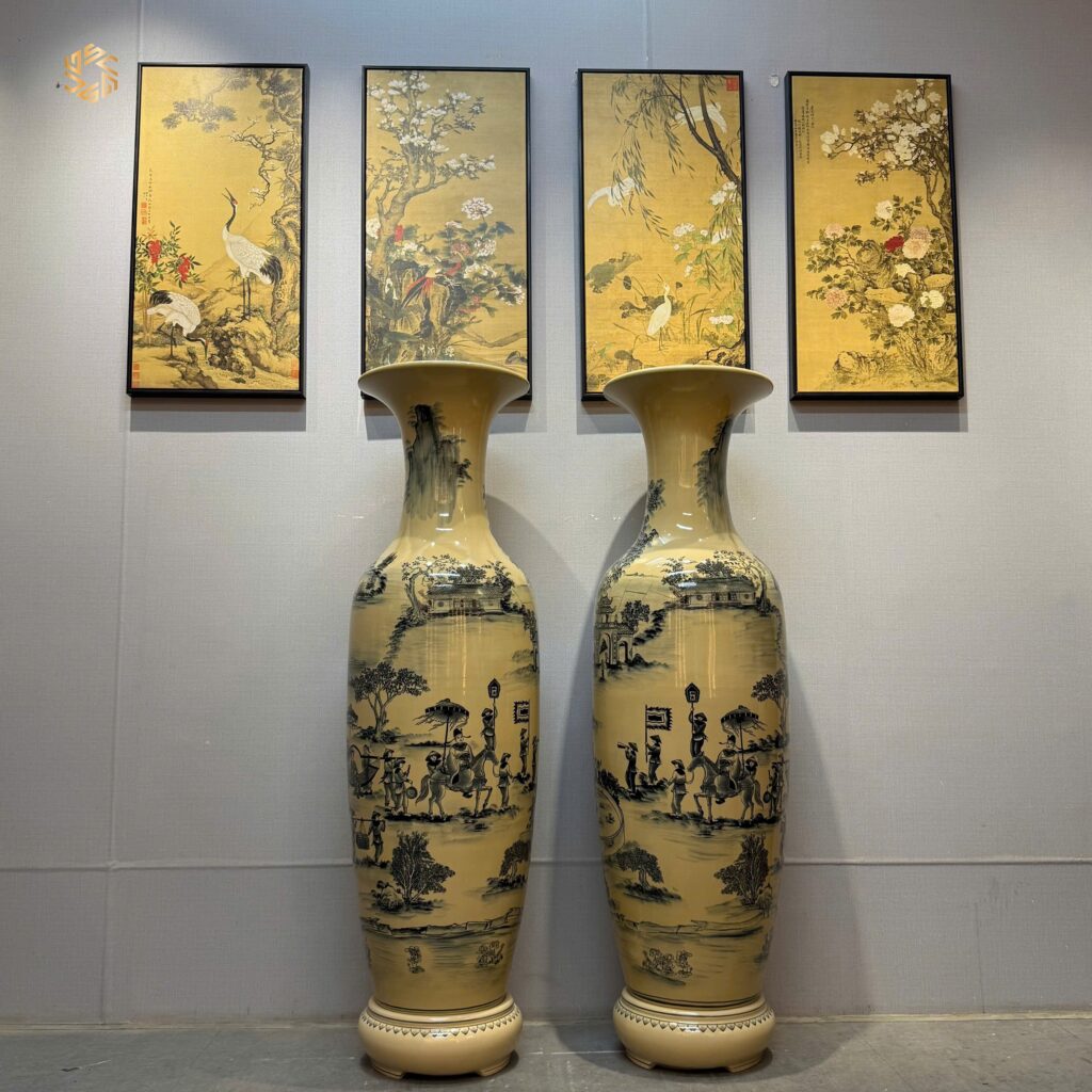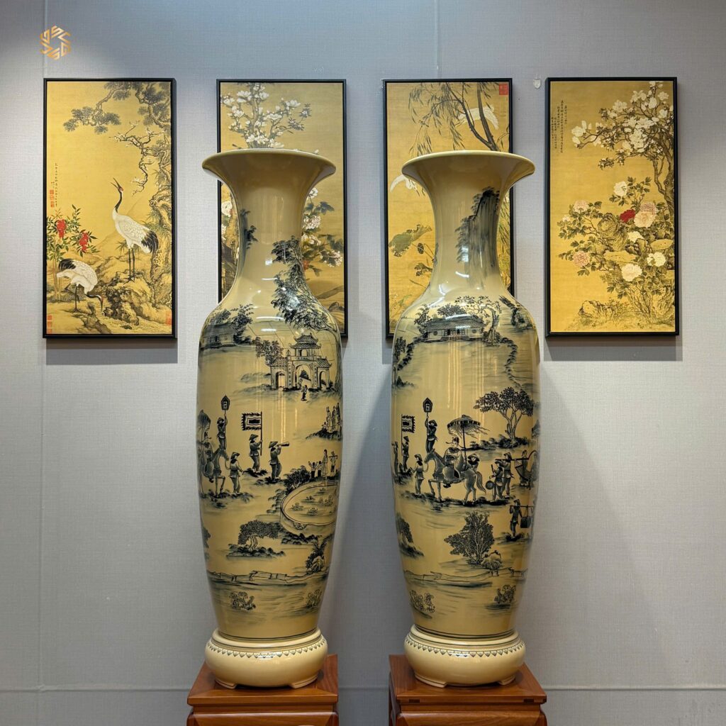 Lộc Bình Gốm Chu Đậu 1M35 Hoạ Tiết Vinh Quy Bái Tổ Men Gốm Truyền Thống.
