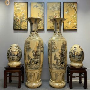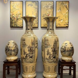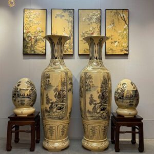 Lộc Bình Gốm Chu Đậu Lộc Bình Gốm Chu Đậu 1M55 Sơn Thuỷ Hữu Tình & Trứng Tài Lộc H45 Vẽ Vàng 24K