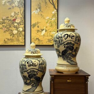 Bảo Bình Gốm Chu Đậu hoạ tiết Bạch Điểu Triều Phụng phiên bản H95 vẽ vàng 24k tinh xảo